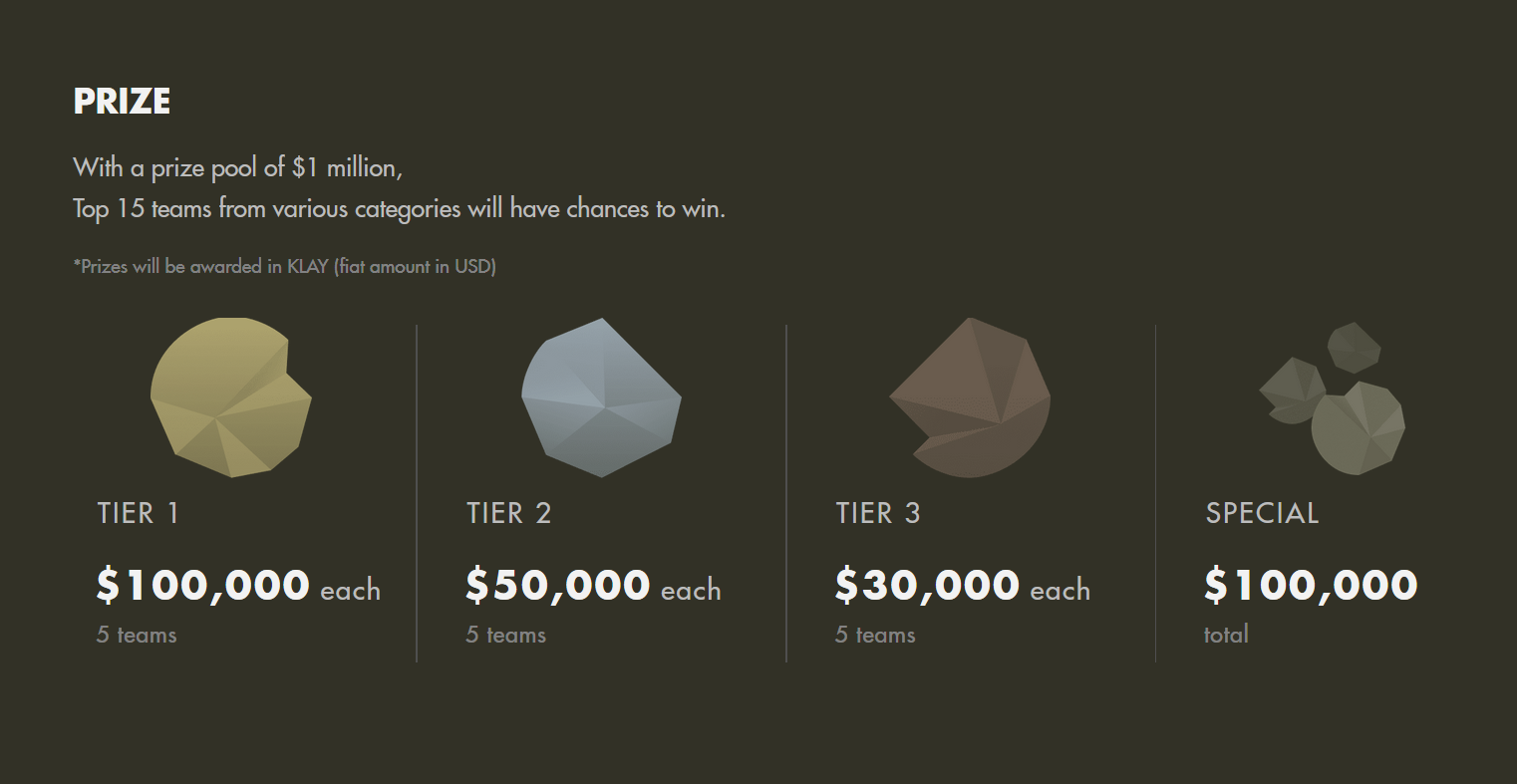 1~5등 수상자는 각각 상금 10만 달러 , 6~10등은 5만 달러 , 11~15등은 3만 달러 상당의 클레이를 지급한다고 합니다.