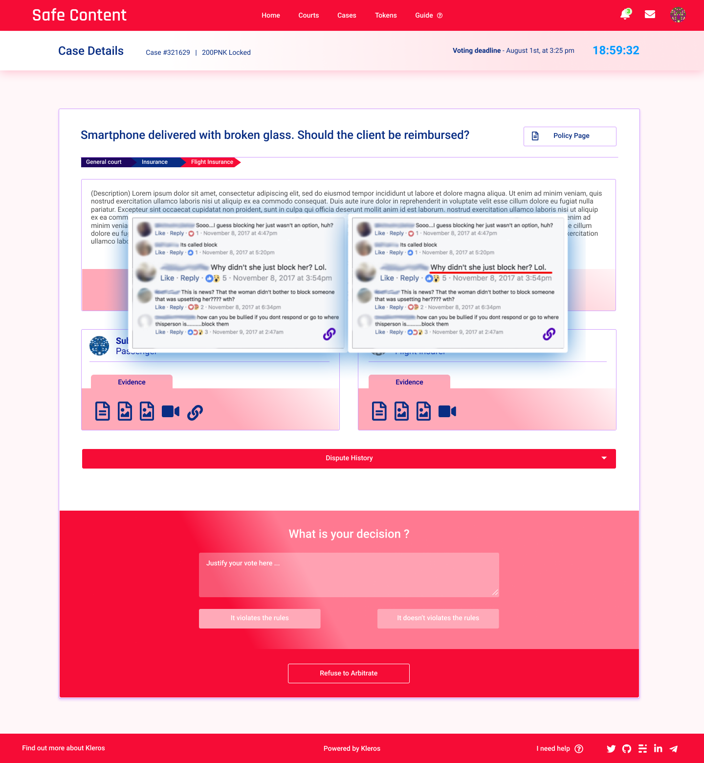 Например, предположим, что есть компания ООО «Честный суд», которая имеет счета в крипто валюте Ethereum и сотрудники которой умеют создавать споры в Kleros.