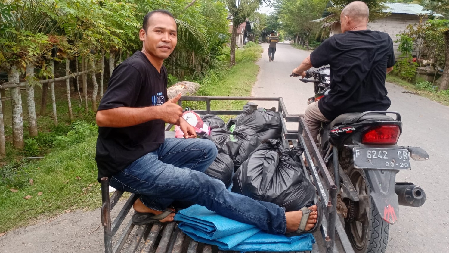 | Potret dua steemian aktif sedang membawa makan siang kari kambing untuk menu makan siang. @neukyan dan @muksa mengambil peran penting pada event Meet-Up Global kemarin |
