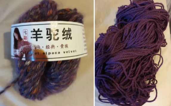 The first one above is like mohair in lightness and fluffiness while the other yarn is a normal Double Knitting acrylic yarn I found in my stash. Together they combined to make a thick fabric that didn’t require lining but protects the wearer from the cold.
