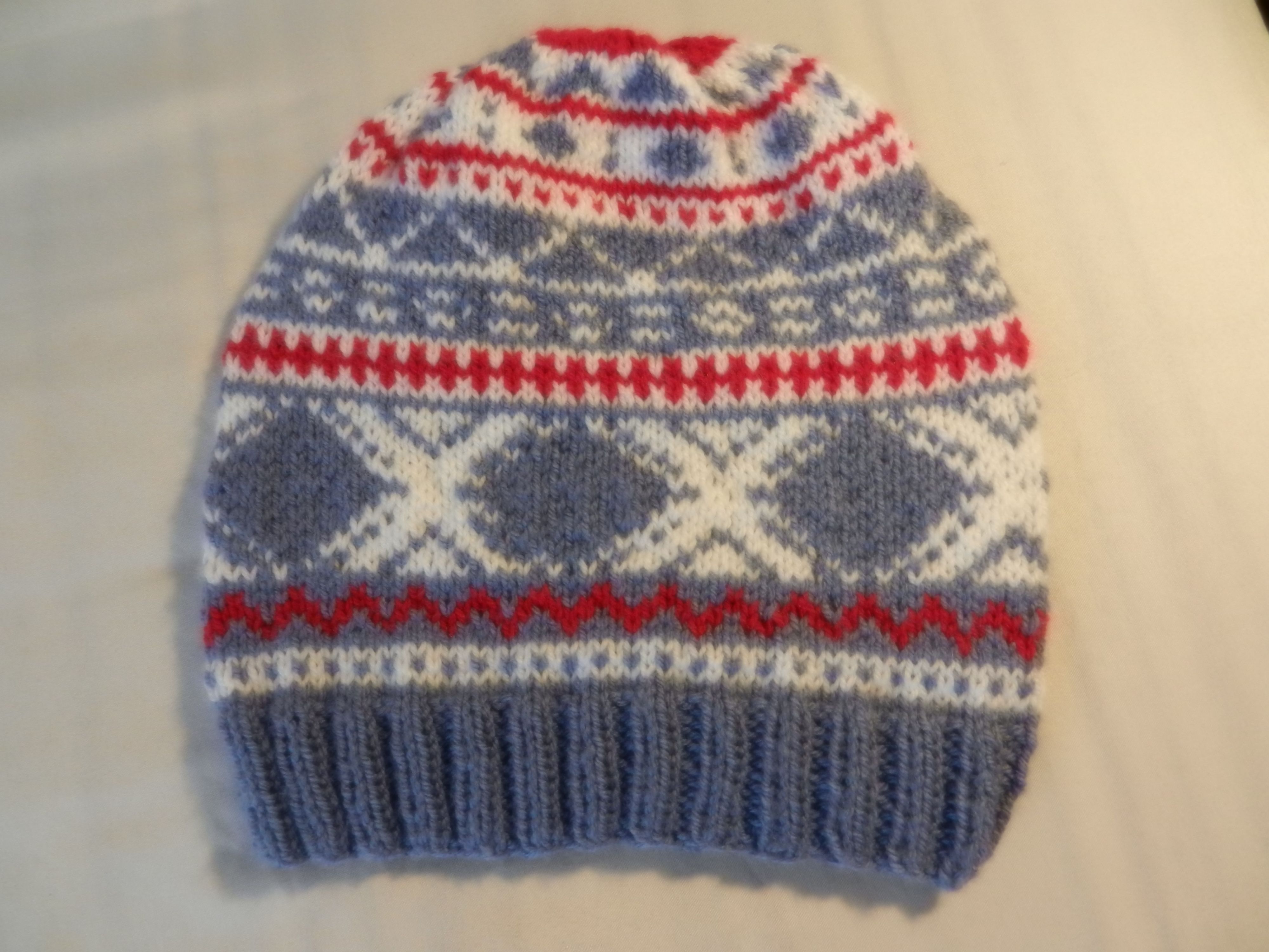 Working on the hat was a lot of fun. I really enjoy colourwork. When I realized that this hat was much too large for anyone I know, the hat was almost finished.