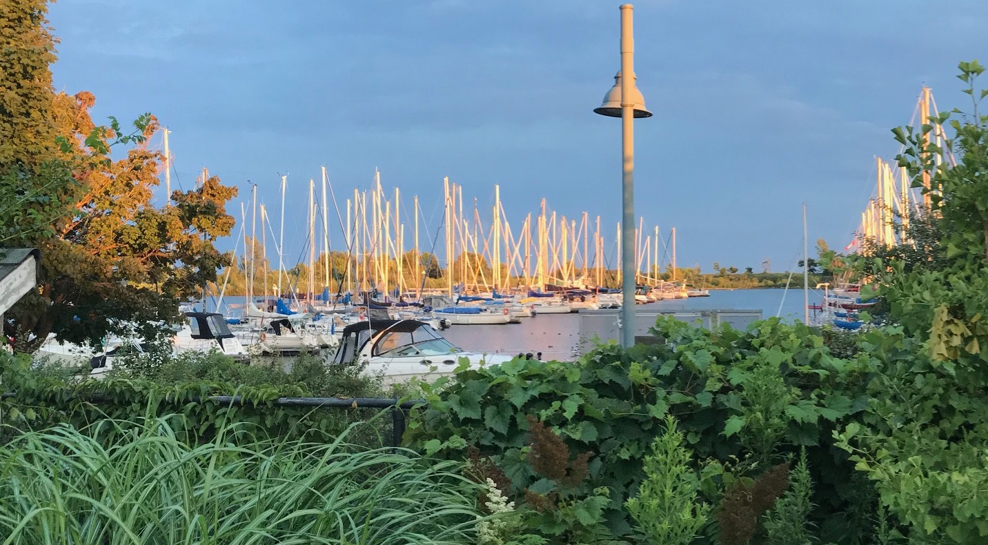 As soon as we got in, the clouds cleared, wind died, and sunset threw some nice rays on the masts at the club as we enjoyed our burgers.