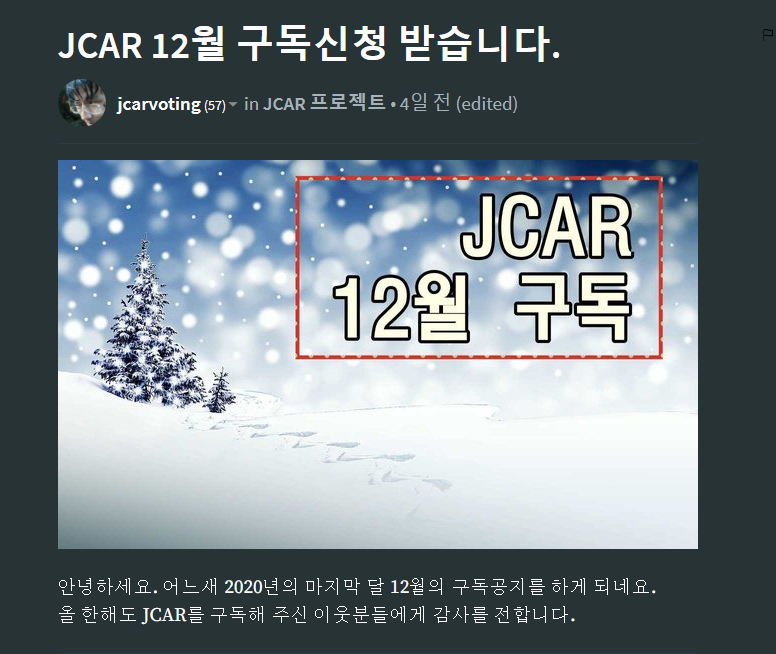 2020년 @jcarvoting 구독(보팅)신청 정보 클릭