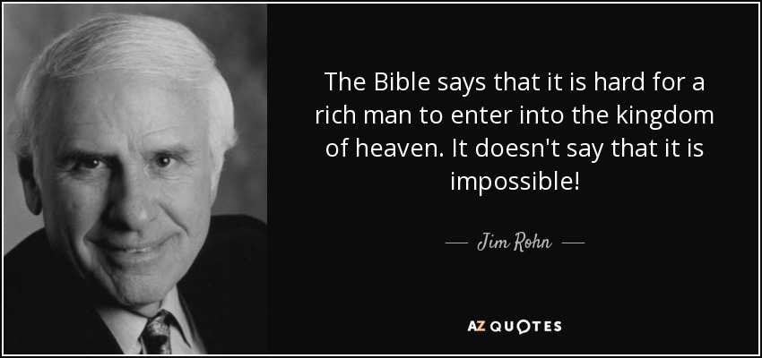 “And again I say to you that it is easier for a camel to enter the eye of a needle than for a rich man to enter the Kingdom of God.”