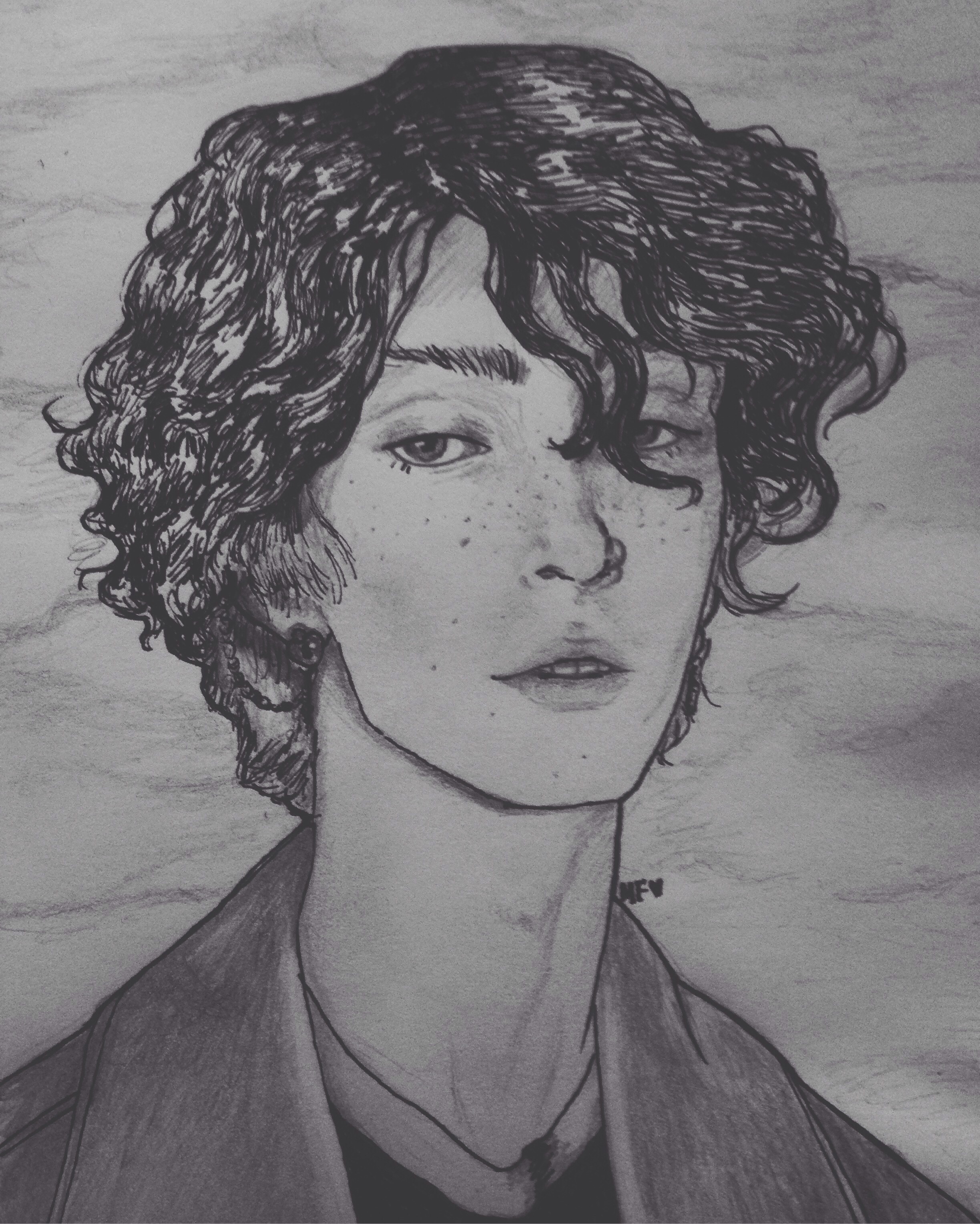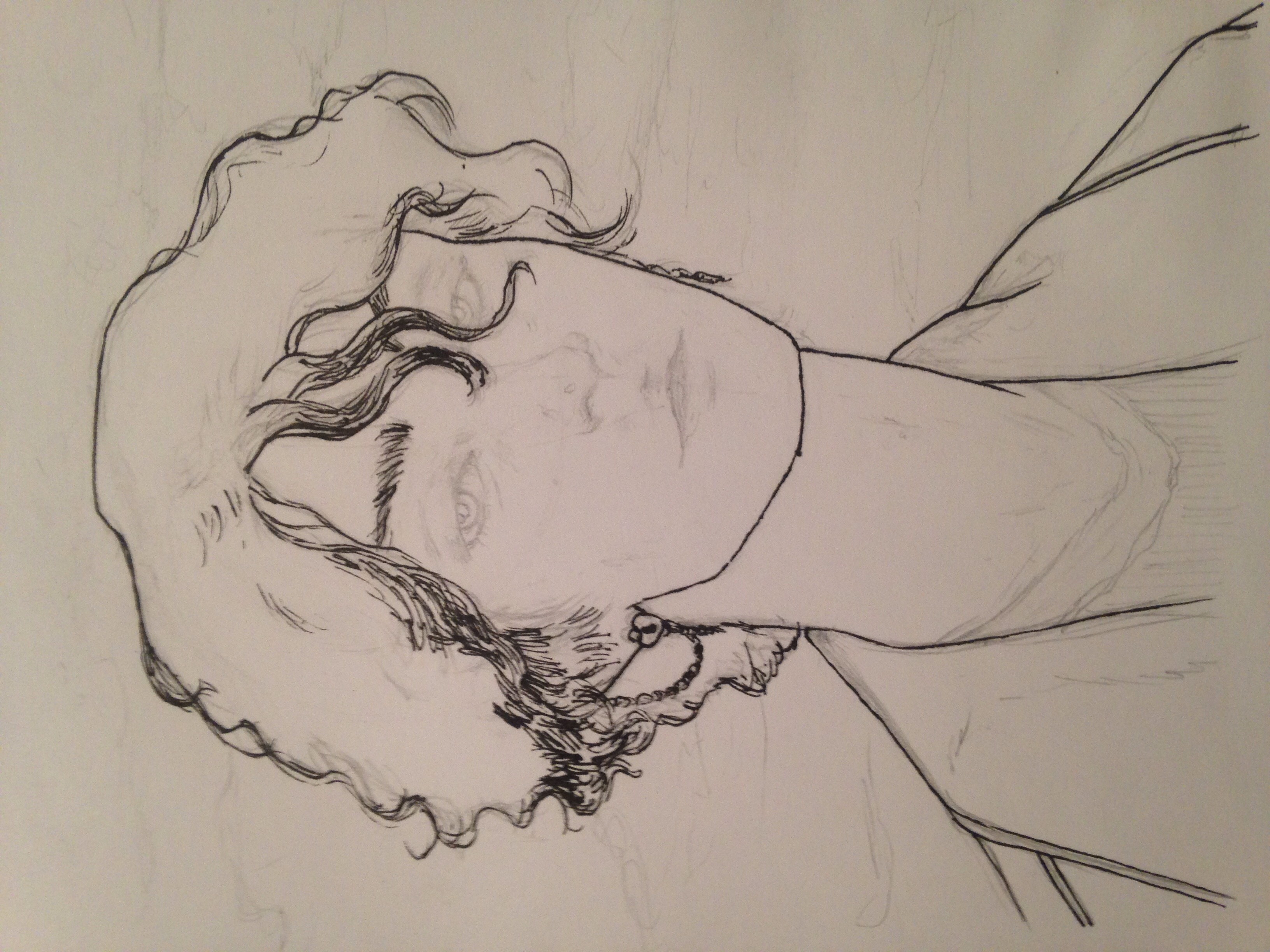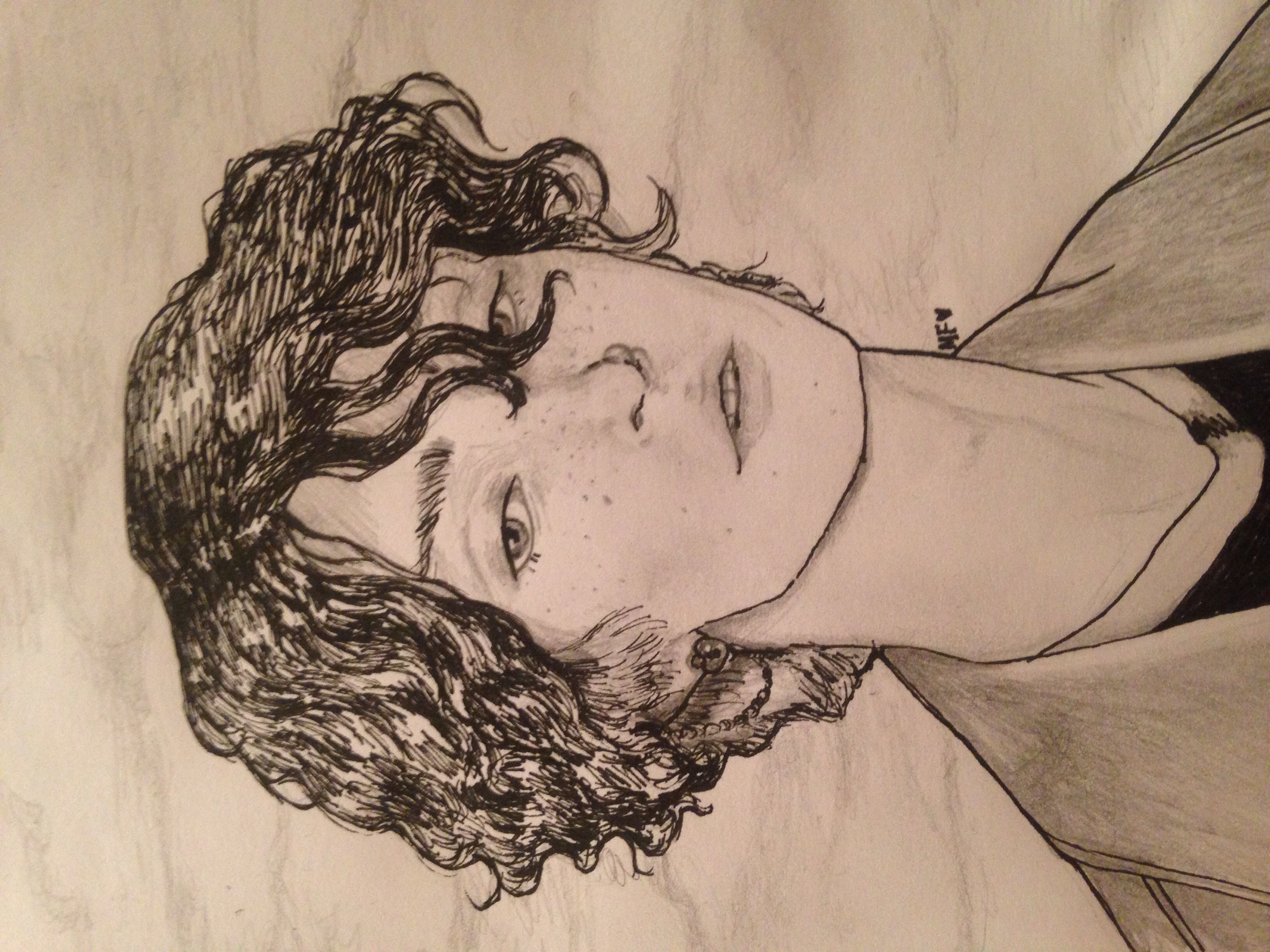 Then, the outline, this time was my first time doing curly hair directly with the pen,a little bit risky, but it´s better that way