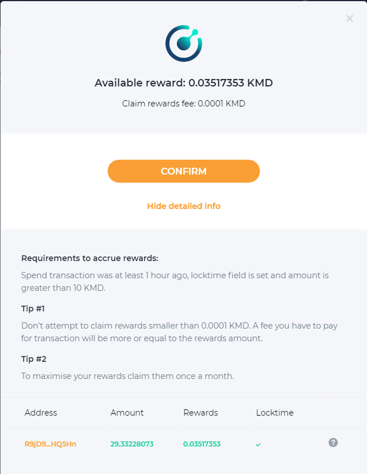 But ... for me, I will claim reward every 15 day, on date 1 and 15 of each month, and then after reward confirm, I will transfer balance and reward into 1 block, so it will earn more, more hold ... more earn.