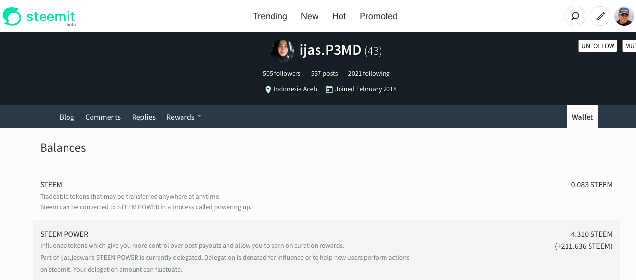 Berada di "negara bagian" Steem juga penuh dengan tantangan perbaikan, dan ini wajar sebab Steem baru berusia muda sekali. Pikiran positif tentang usia muda ini membuat saya menyimpan mimpi memiliki Steem Power yang besar dan memilih berbagi Steem Power Delegasi kepada Steemian lain agar mimpi saya yang belum terwujud bisa saya wujudkan kepada yang lain, kali ini untuk Steemian perempuan energik, inspiratif, dan tetap menjaga cita rasa positif di dalam dinamika komunitas.