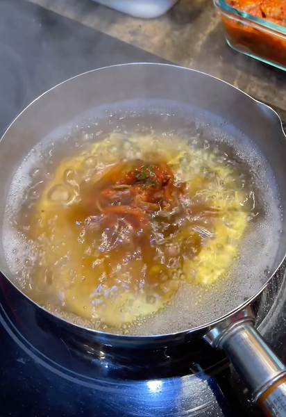 야채 국물 3 1/2 컵을 끓입니다. 솔직히 서양식 야채 국물은 아시아 요리에 가장 적합하지 않습니다. 나는 한국의 발효 야채 소스인 욘두로 빠른 야채 육수를 만드는 것을 좋아합니다. 모든 한국 요리를 위한 빠른 야채 국물을 위해 물 1컵당 욘두 1티스푼을 추가하십시오! 욘두는 한국의 모든 식료품점이나 아마존에서 찾을 수 있습니다!
