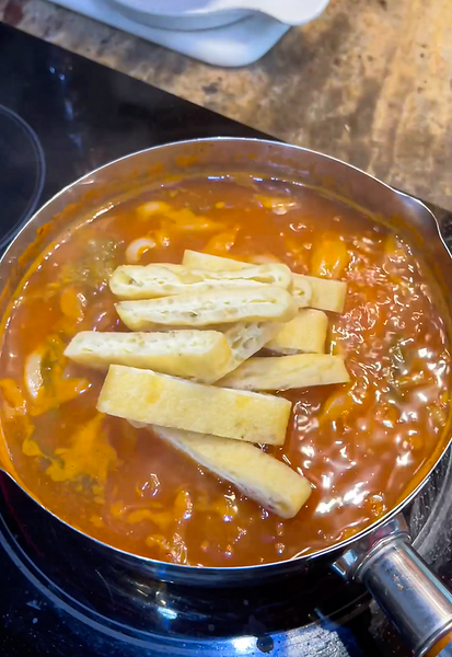 면이 다 익으면 썰어둔 유부를 넣어주세요. 유부는 한국말로 아부라시대를 뜻한다. 튀긴 두부. 냉동 또는 냉장고 섹션의 아시아 식료품 점에서 매우 쉽게 찾을 수 있습니다. 김치 우동 수프