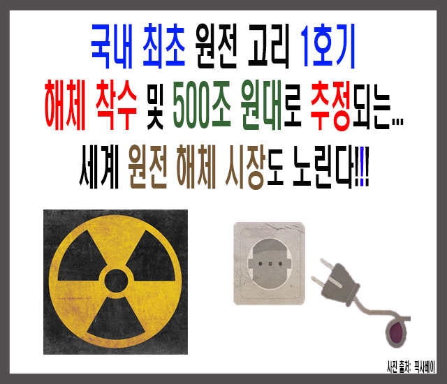 국내 최초 원전 고리 1호기 해체 착수 및 500조 원대로 추정되는 세계 원전 해체 시장도 노린다.