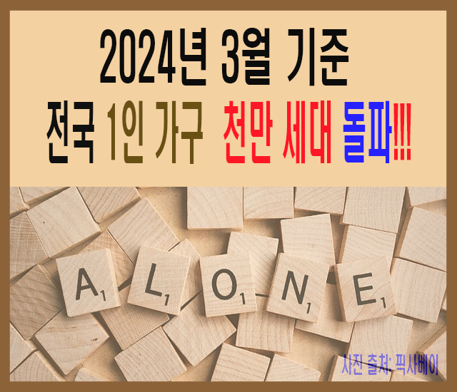 2024년 3월 기준 전국 1인 가구 천만 세대 돌파!!!