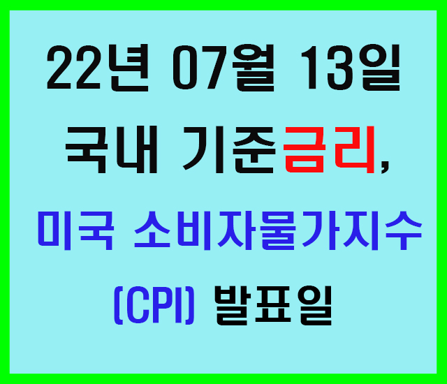 22년 7월 13일 국내 기준금리 발표 및 미국 소비자 물가지수(cpi) 발표일~