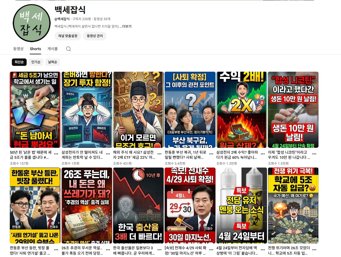 2~3분대 롱폼 13개와 숏폼 22개 정도를 올렸습니다.