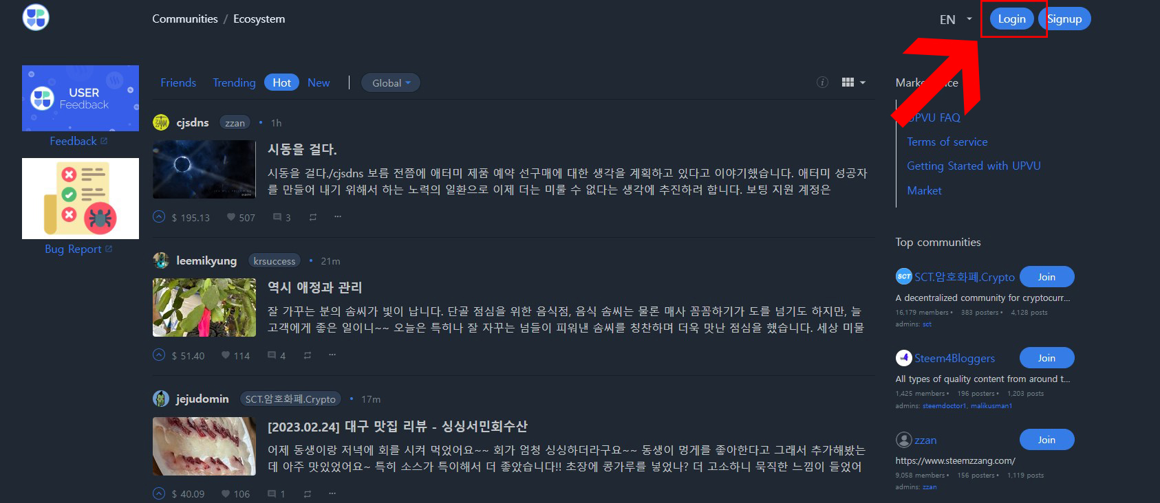 사이트 오른쪽 맨 위쪽에 보면 Login을 눌러 줍니다.