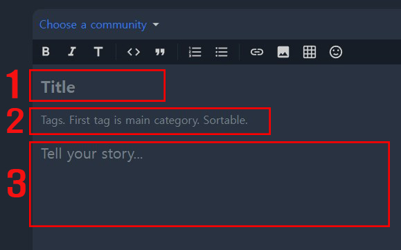 태그 창 클릭 후에 맨 위에 Choose a community를 선택하면