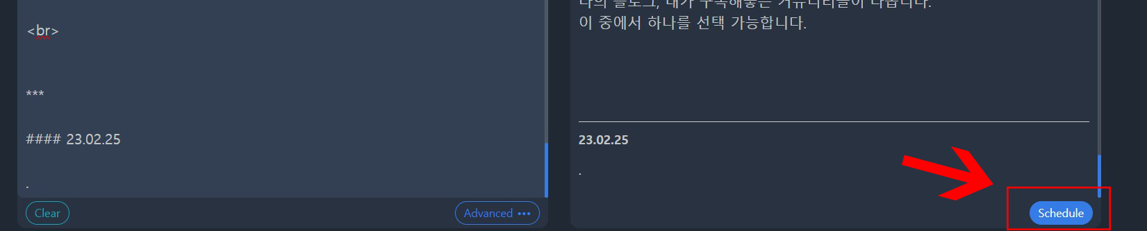 Schedule를 누르면 예약 포스팅이 됩니다.