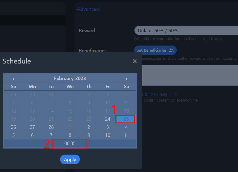 (3) Schedule은 포스팅 예약 날짜와 시간을 정할 수 있습니다.