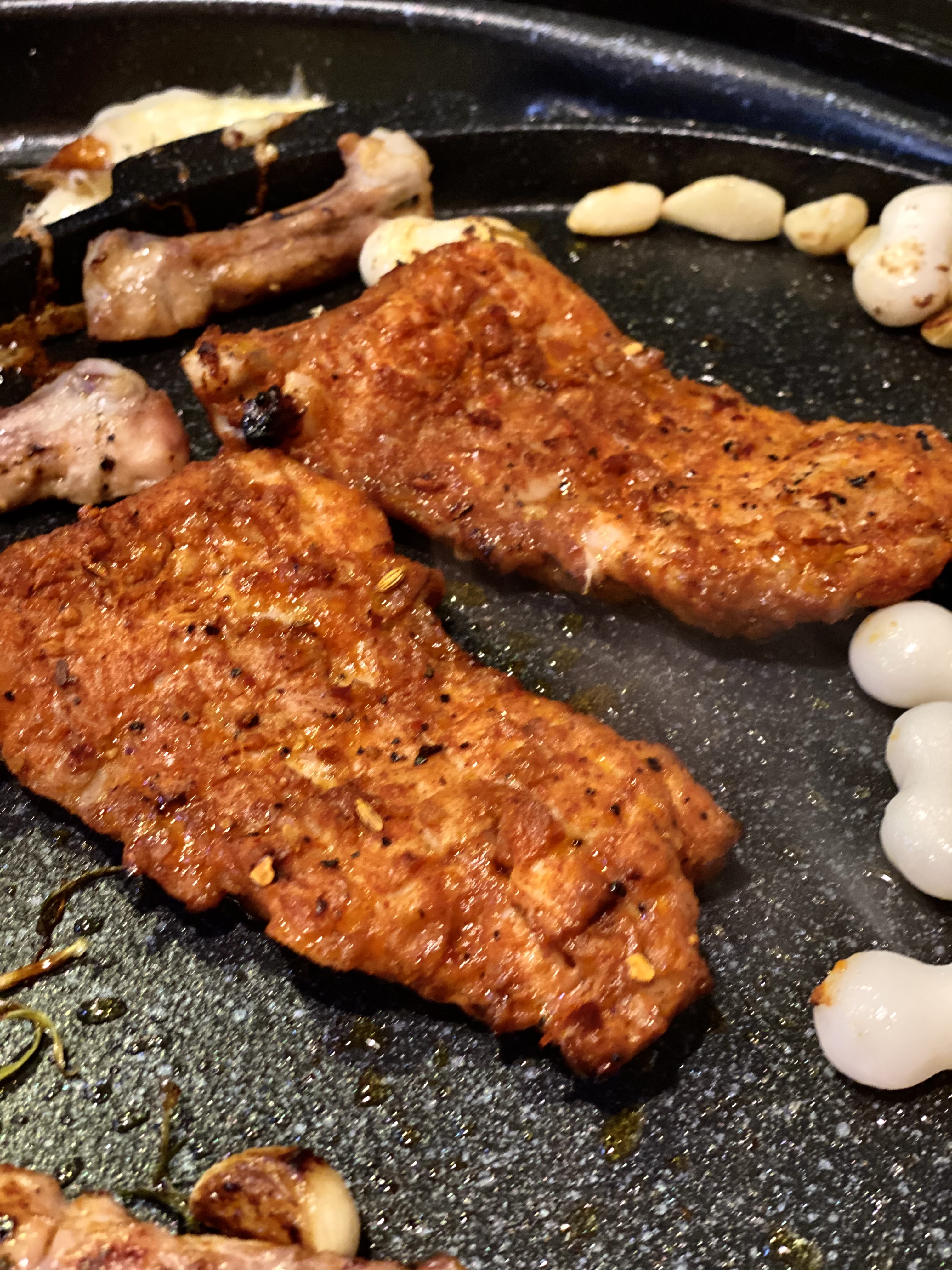 맑음~인가요! 부럽네요ㅠㅠ 서울은 우중충....!!! 2명이 먹은건데 양이 600g에 쟁반국수에 볶음밥까지 먹었으니,, 배터지게 먹었습니당ㅎㅎ불판 큰 식당 좋아요>_<