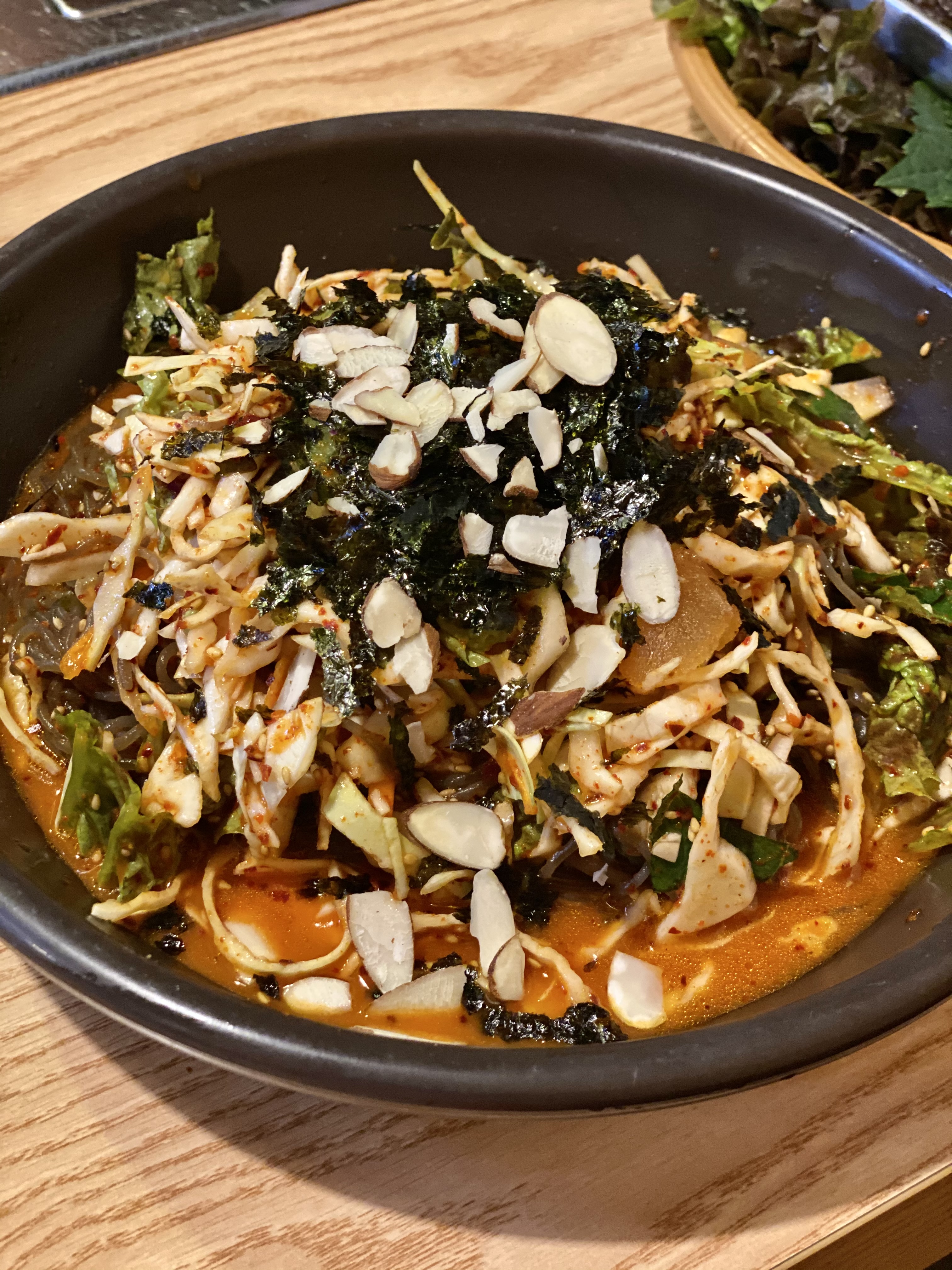 파채도 올리니 파닭 바베큐 비주얼이더라구요?!ㅎㅎㅎ 맛있게 쌈 싸먹었습니당!