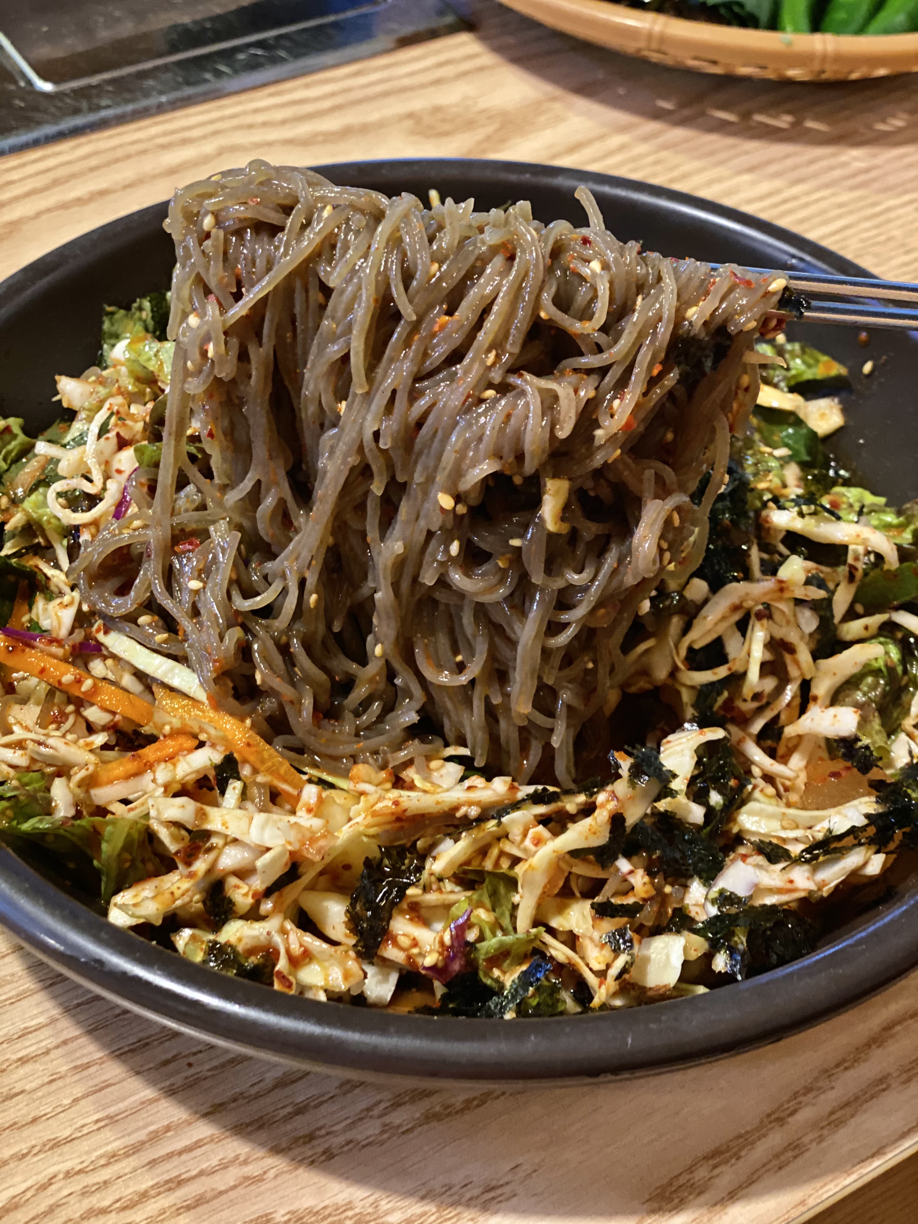 닭고기가 열심히 구워지고 있는 사이 나온 쟁반국수!!