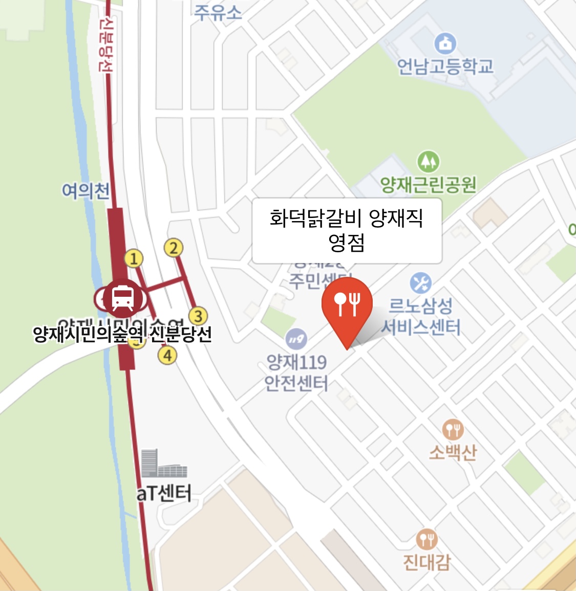 위치는 지하철역 기준 양재시민의 숲 3번 출구와 가깝네요! 저는 매장 오른편에 주차공간이 1대? 있어서 운 좋게 주차했어요!! 그렇지만 차량은 없으심이.. 편하실거에요!!