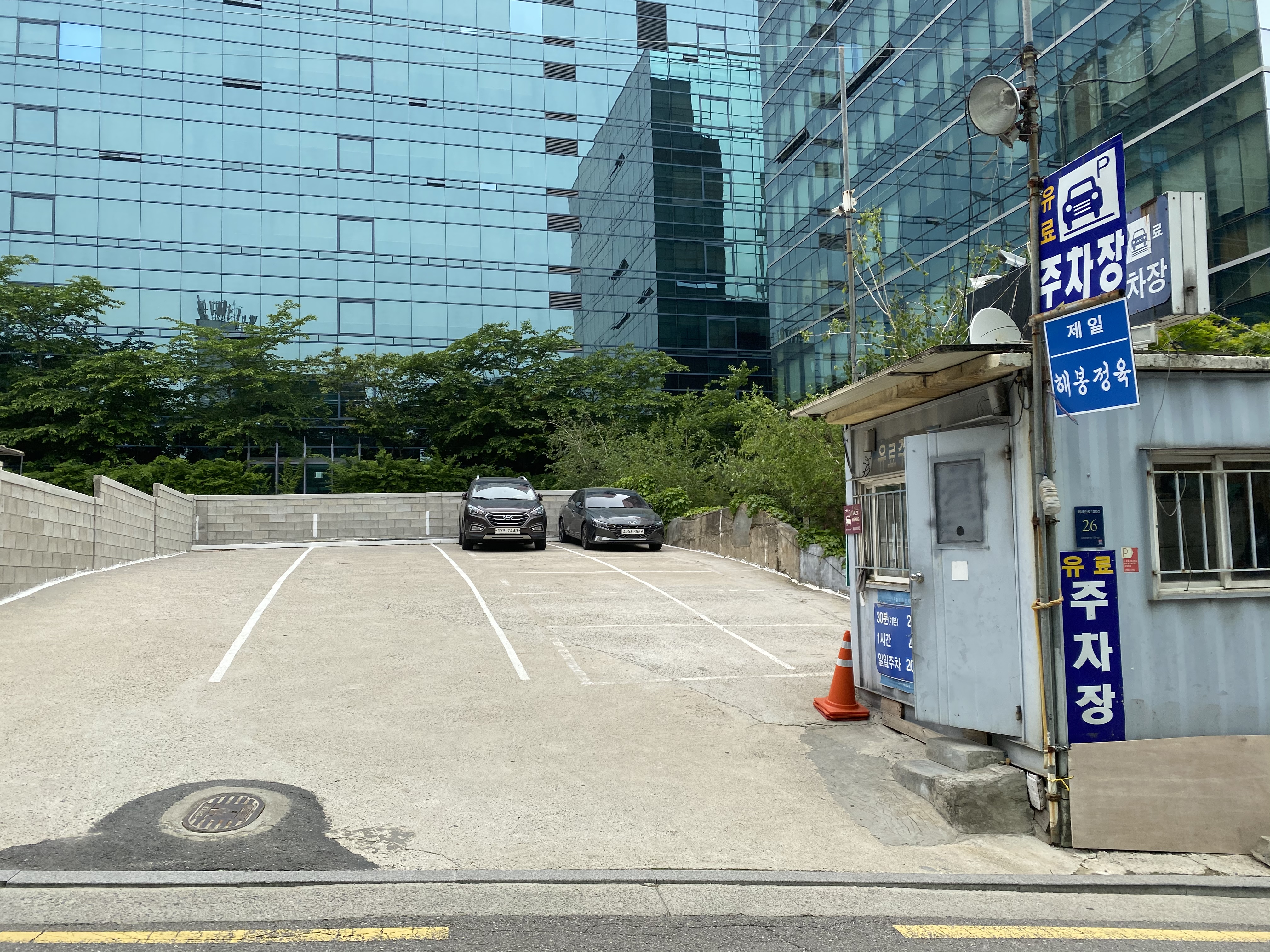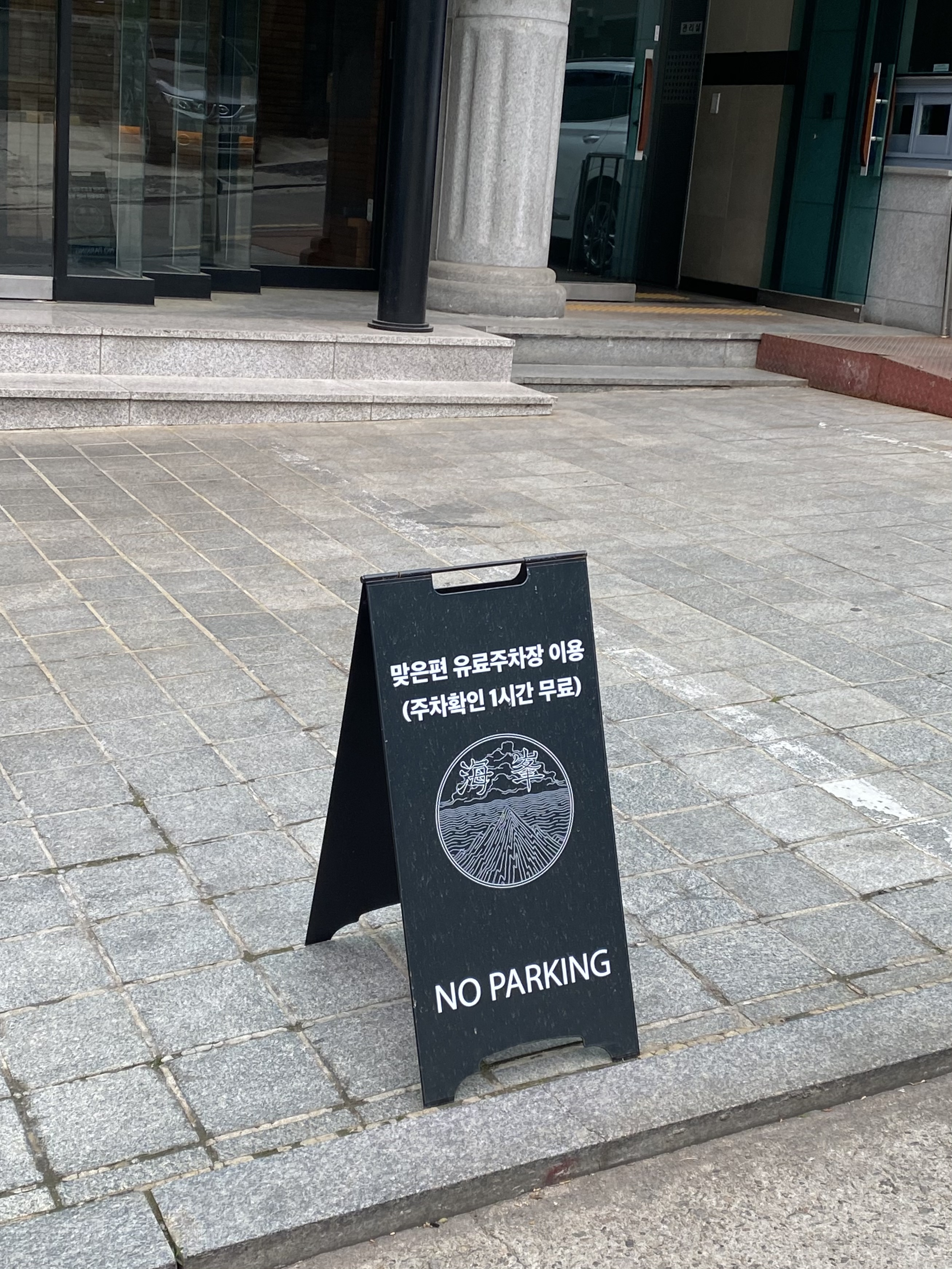 건물 앞에 주차 안내 표지판이 있네용!! 주차확인 도장을 찍으면 1시간 무료 지원을 해주십니당!