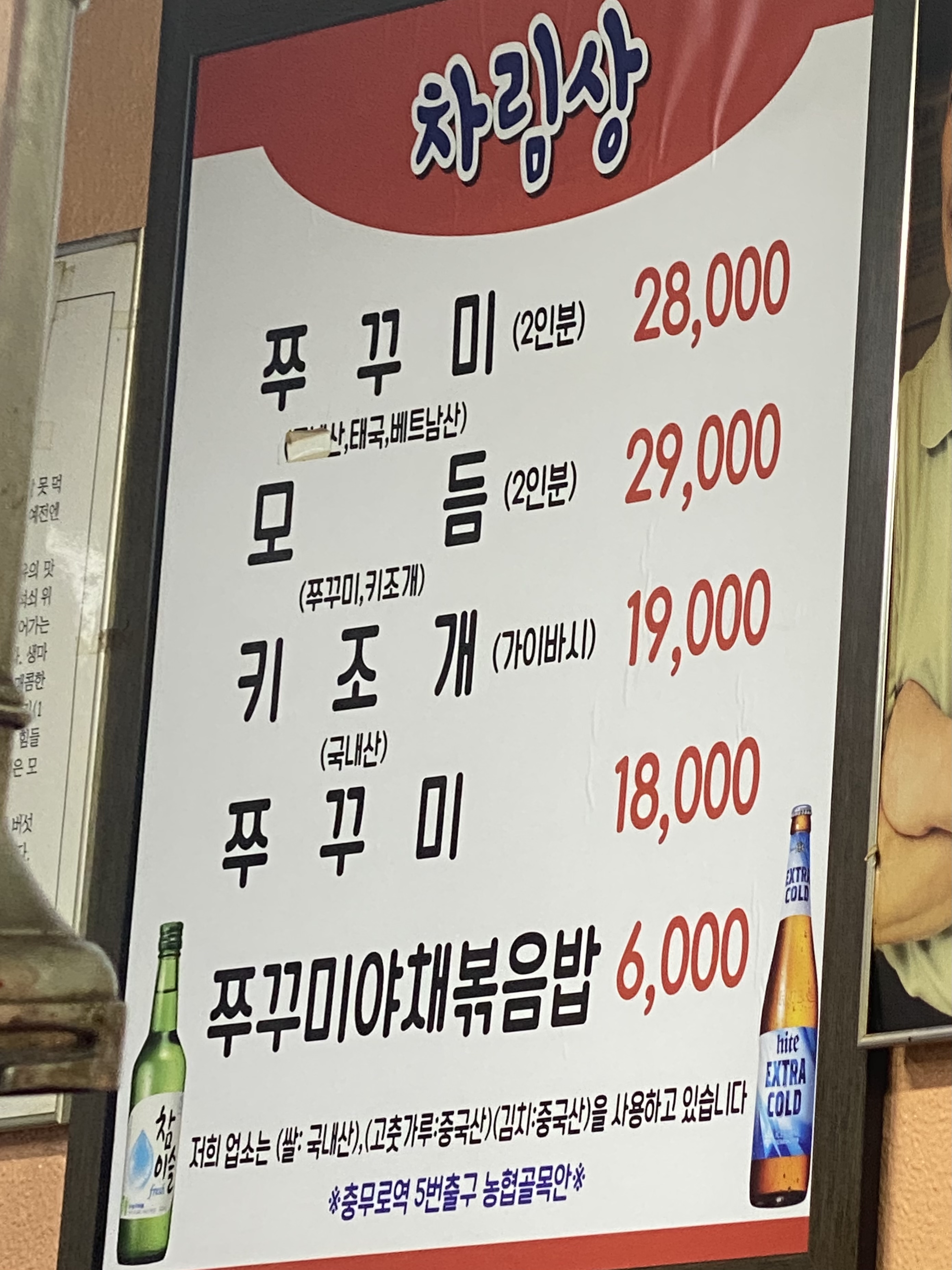 전 알쓰이지만,, 이 곳에서 쭈꾸미를 먹는데, 술을 안 마실 수 없겠더라구요?! 한 잔 쨘~~~!