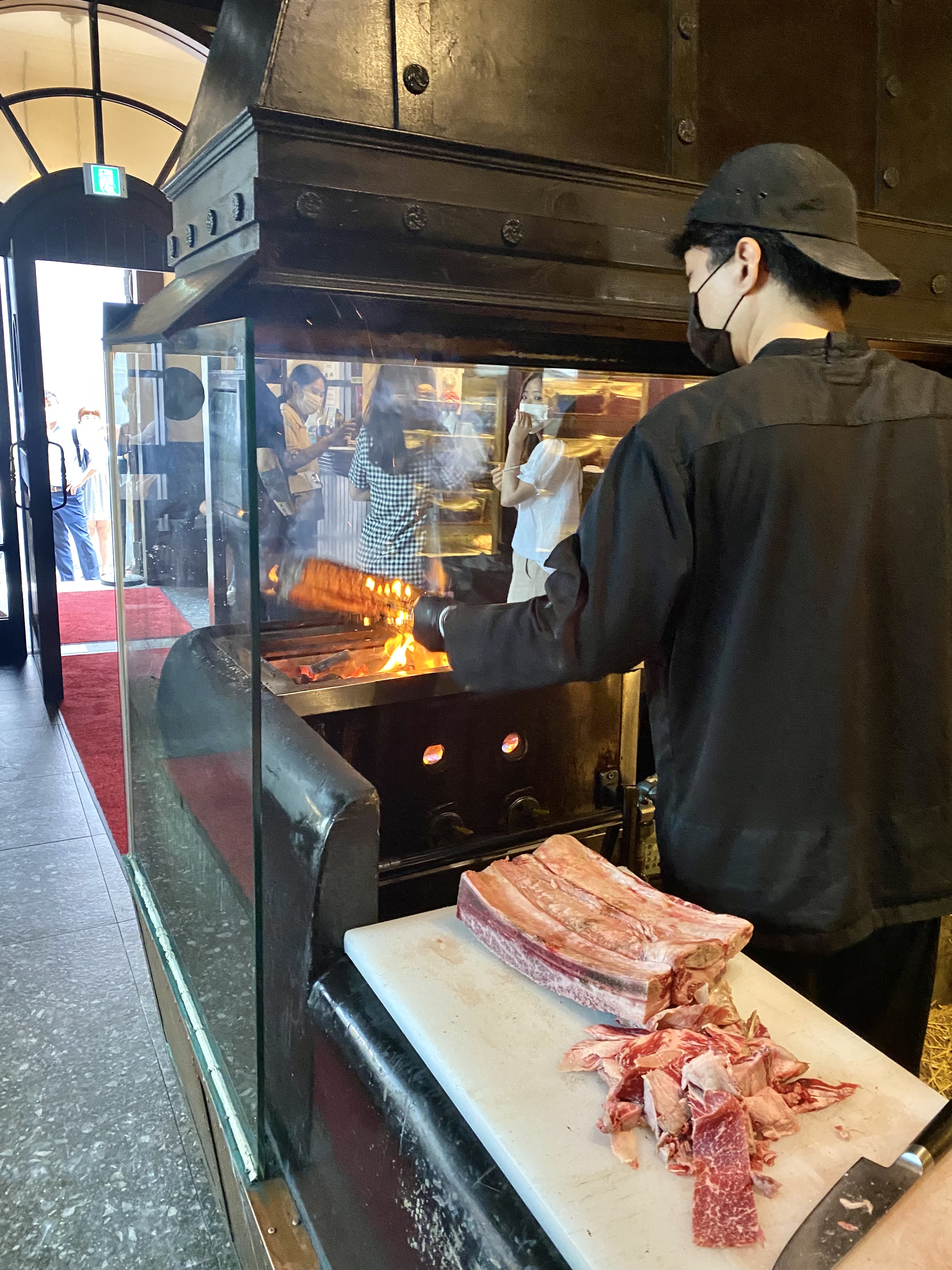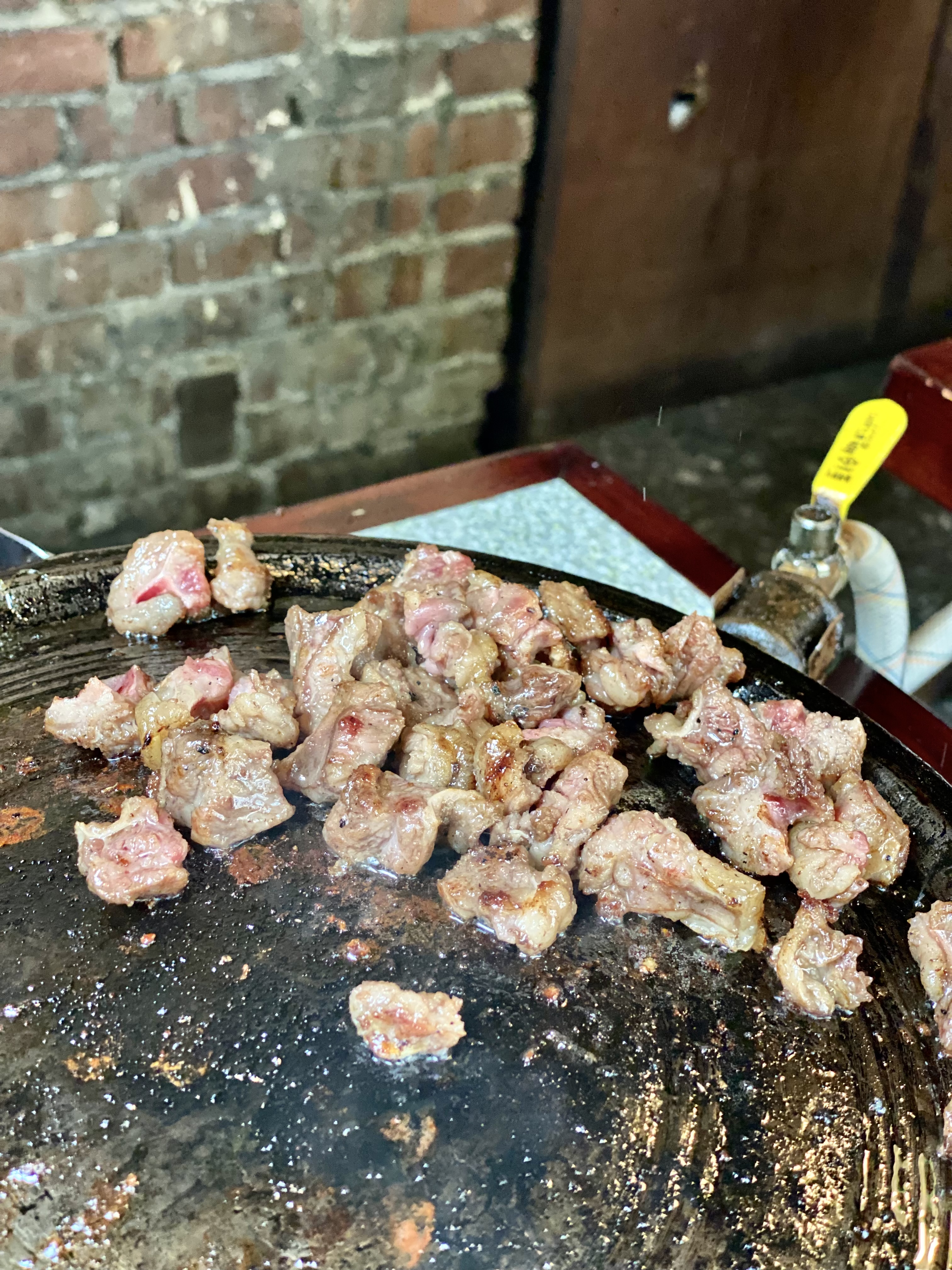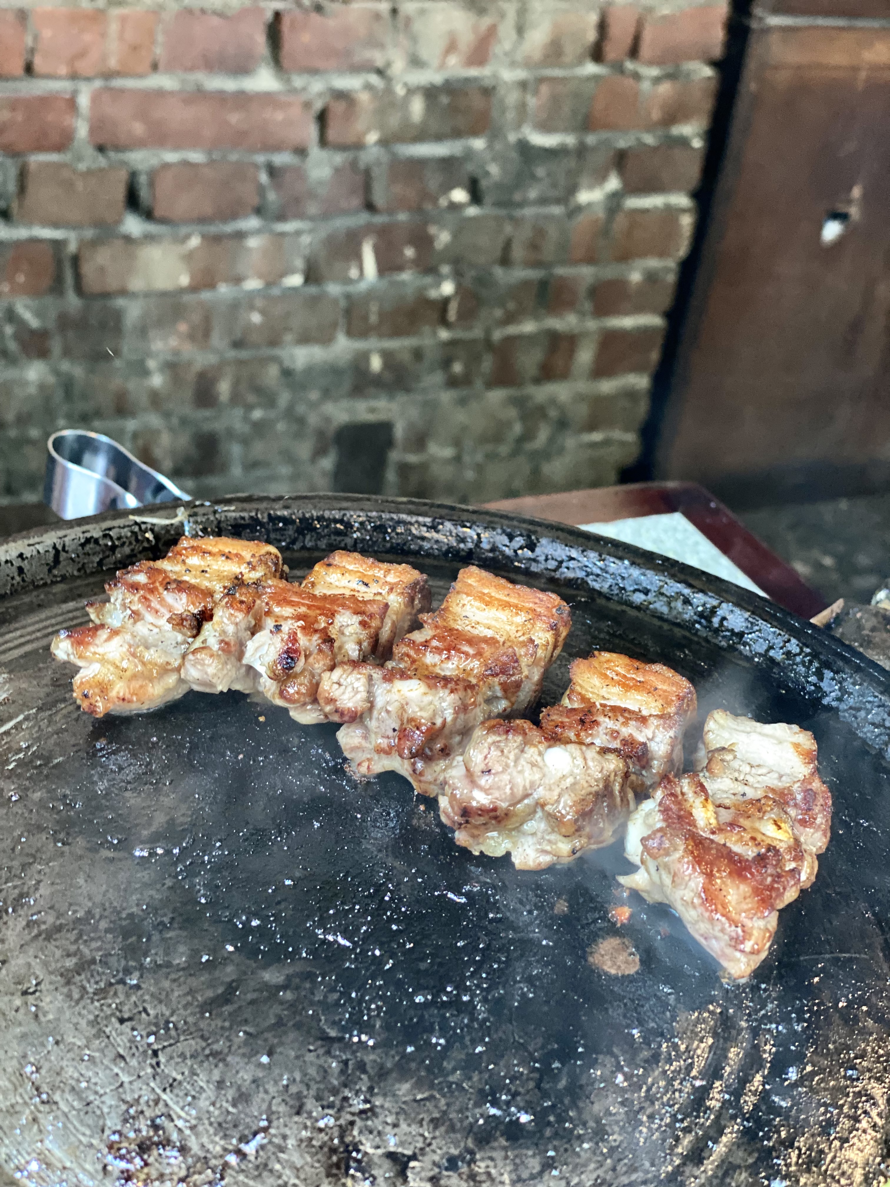 먹고 나오는 길 초벌구이하는 고기 모습 찰칵!