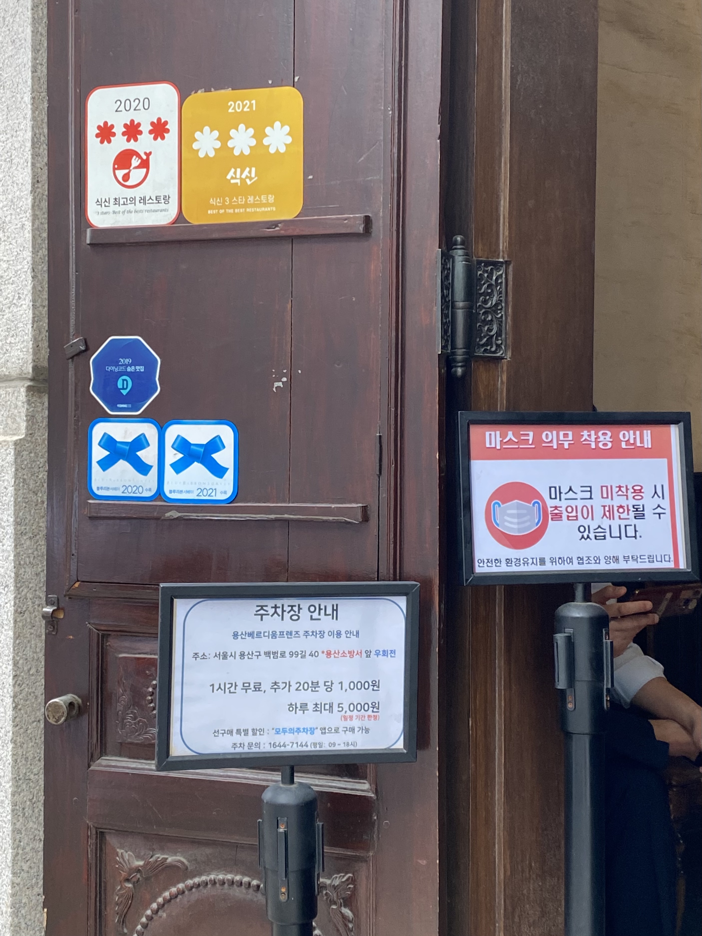 들어가는 입구! (맛집인증 스티커가 팡팡! 주차는 용산베르디움프렌즈 주차장 이용으로 안내되어있네요~ 저도 이 곳에 주차했습니당!! 멀지 않아요~)