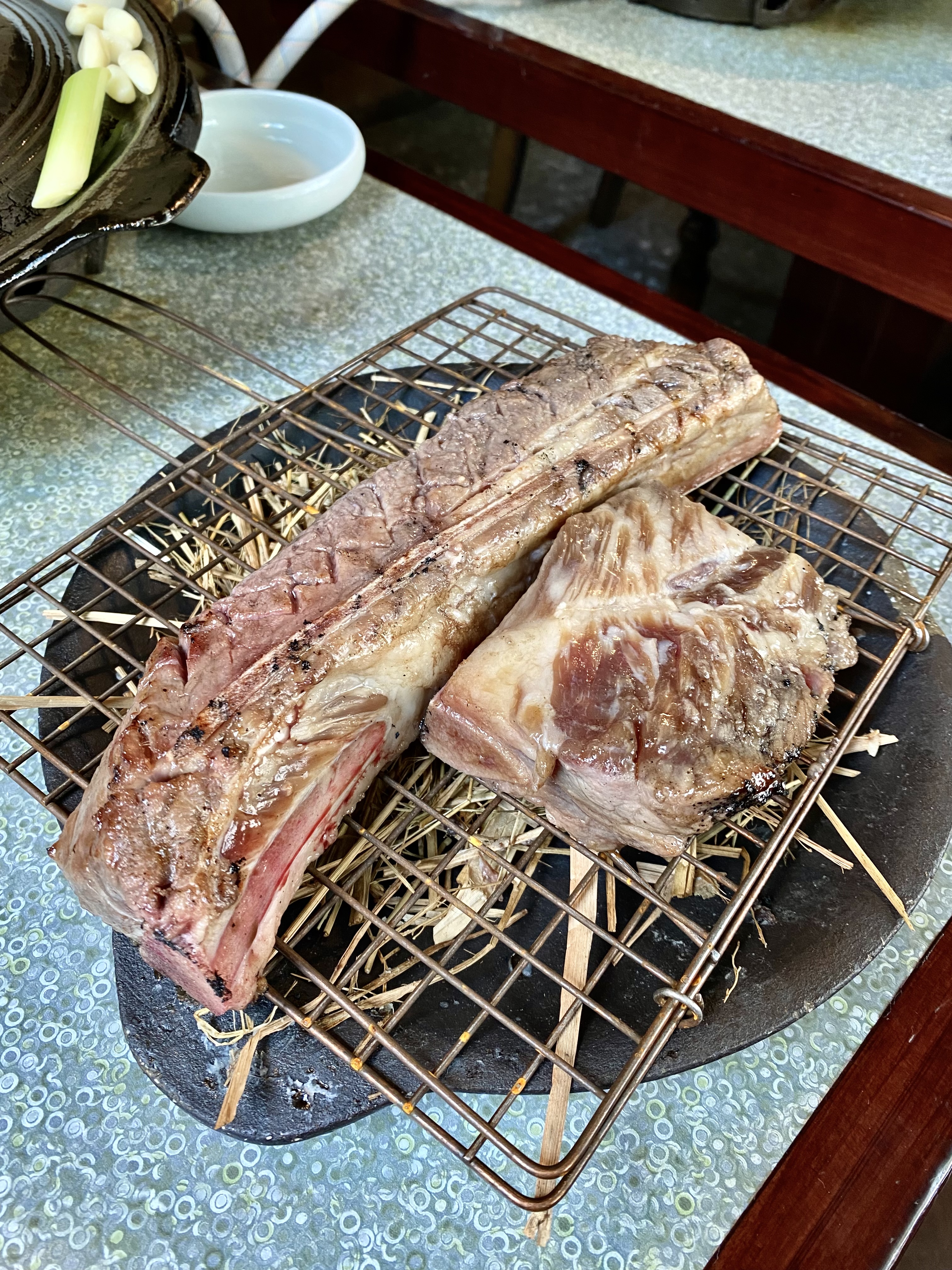 큰 뼈대에 초벌구이 되어있는 고기가 금방 나왔어용~