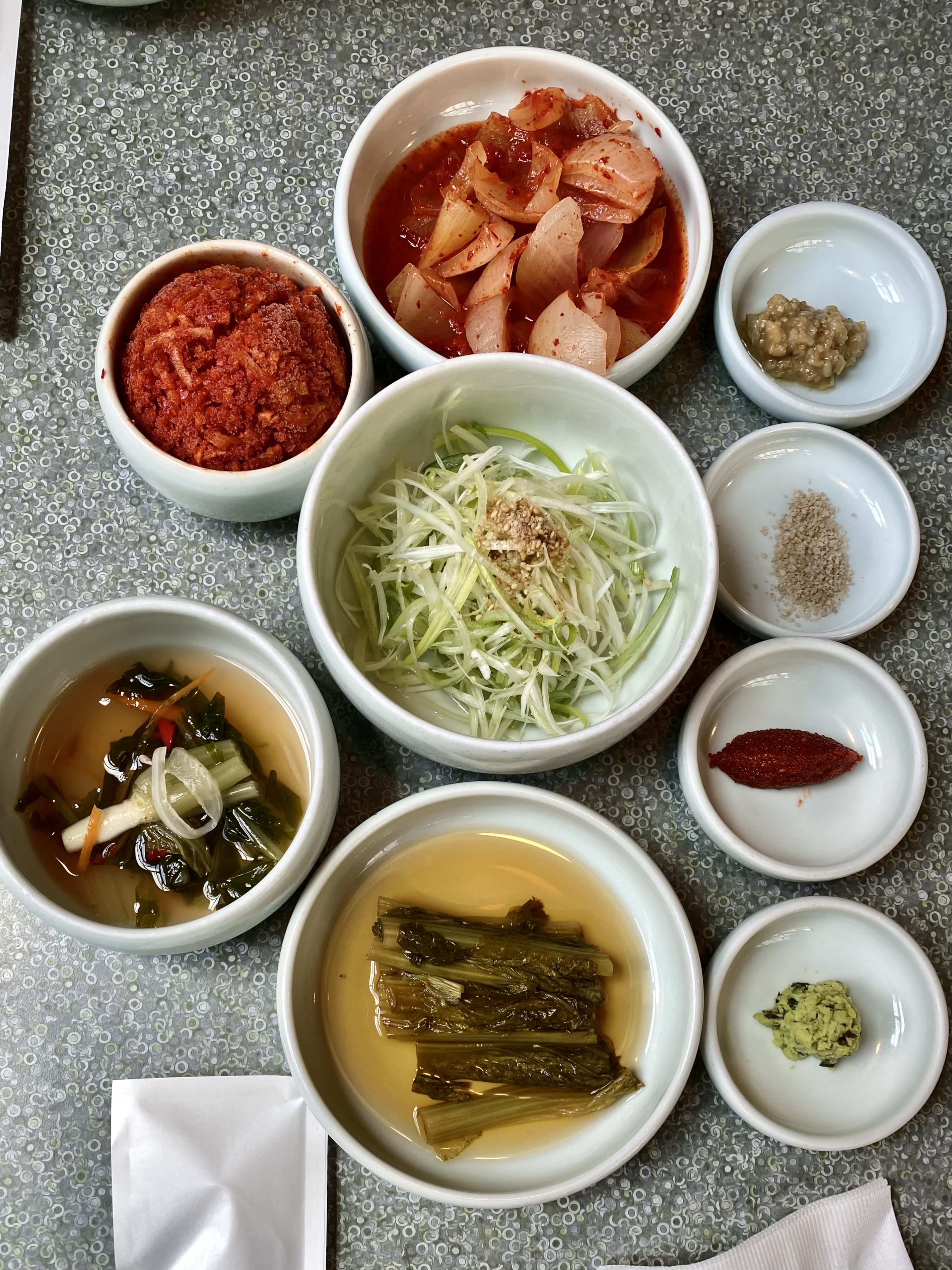 밑반찬이 먼저 깔리고~~~~~~~ 후기들 보면 몽탄의 밑반찬 후기가 굉장히 좋더라구요? 양파김치와 얼어있는 무채의 콜라보~~~