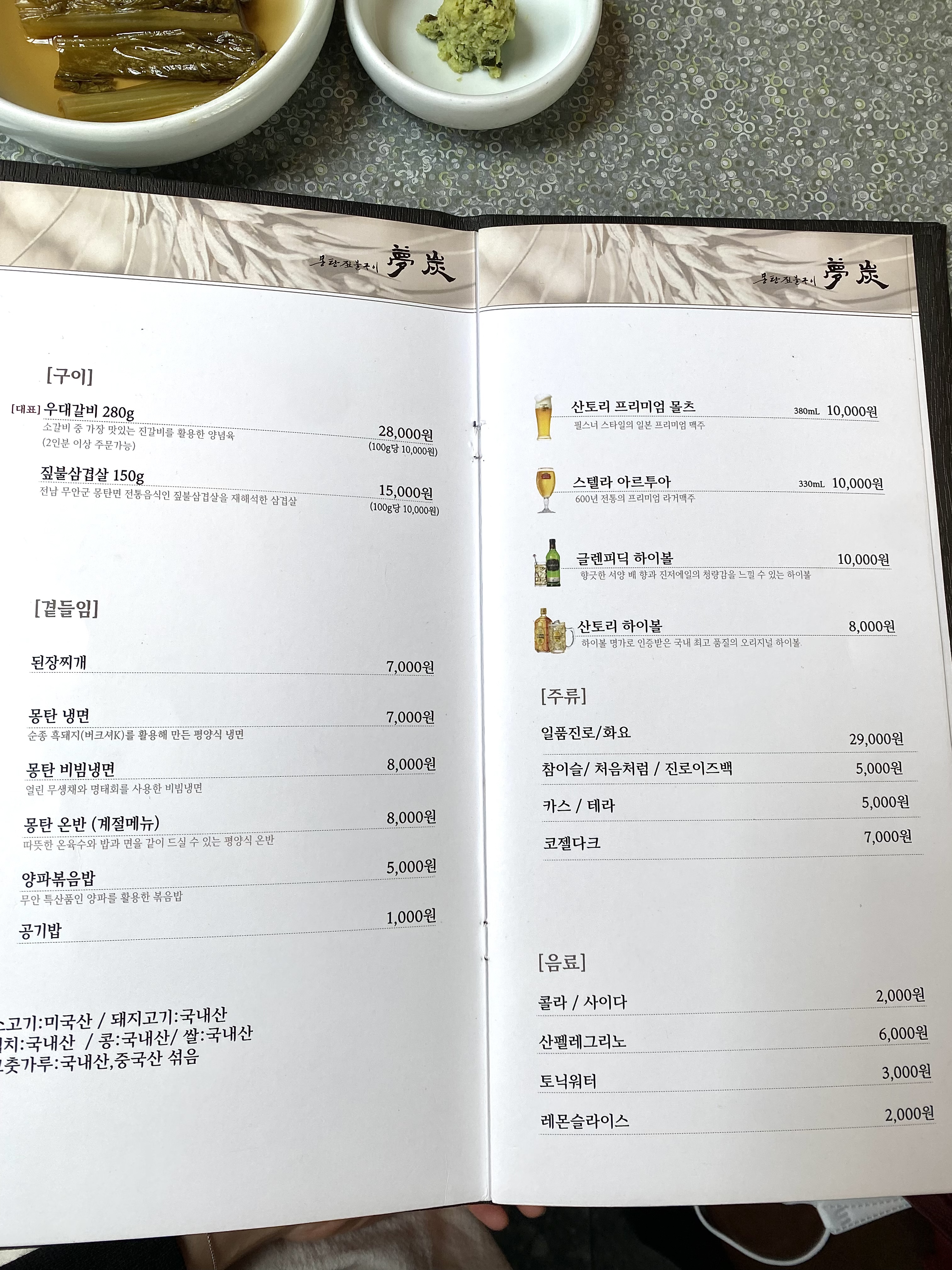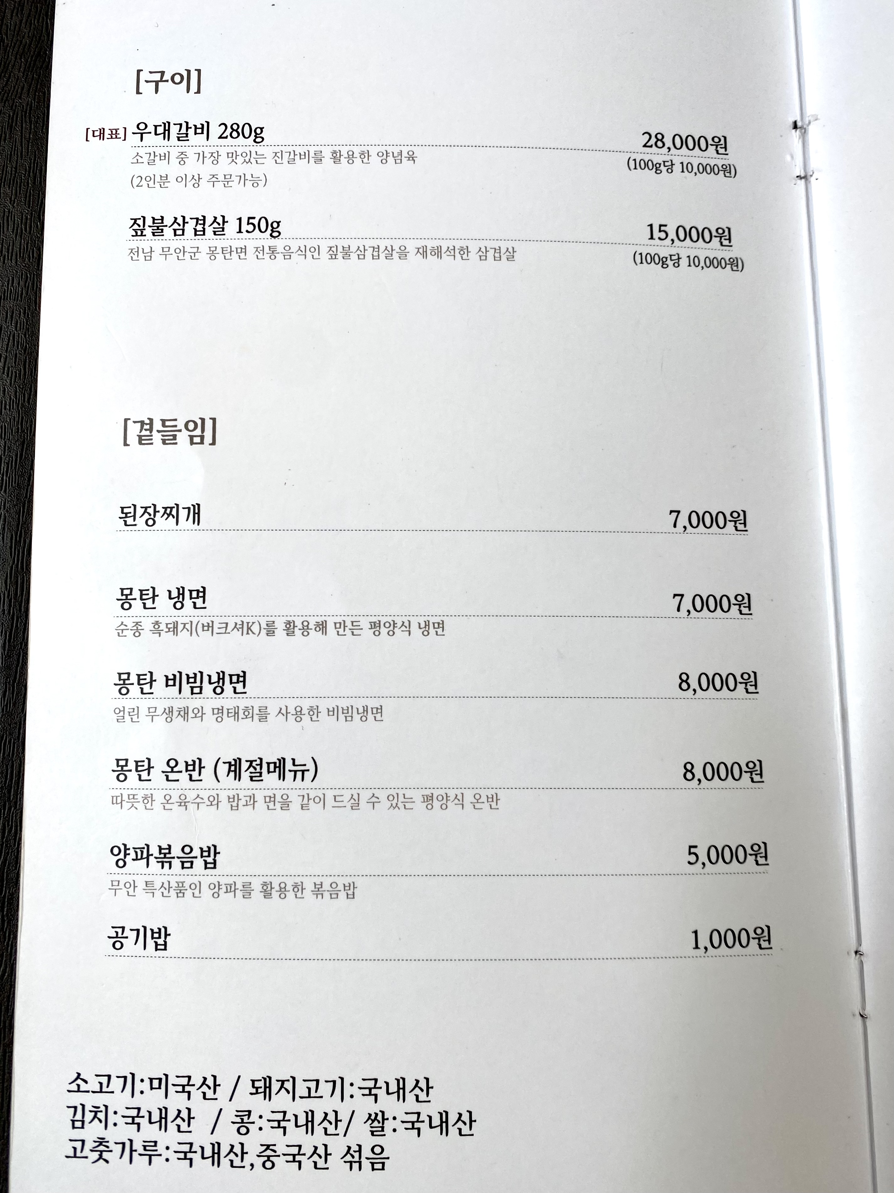 몽탄은 처음이니 다 먹어봐야지~ 생각으로 우선 대표메뉴 우대갈비*2인분(56,000원) 주문해봅니당! (최초 주문시에만 2인분 이상, 추가 주문은 2인분 단위로만 주문이 가능하대요)