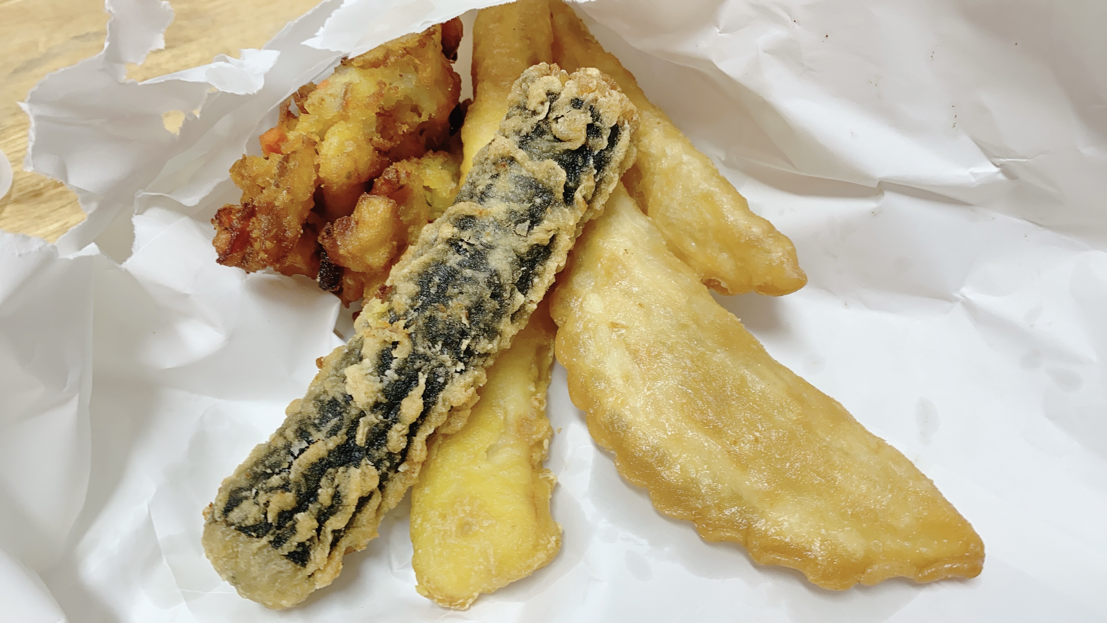 3,000원 어치 모듬튀김은 만두, 야채튀김, 김말이, 오징어튀김까지 다양해여!