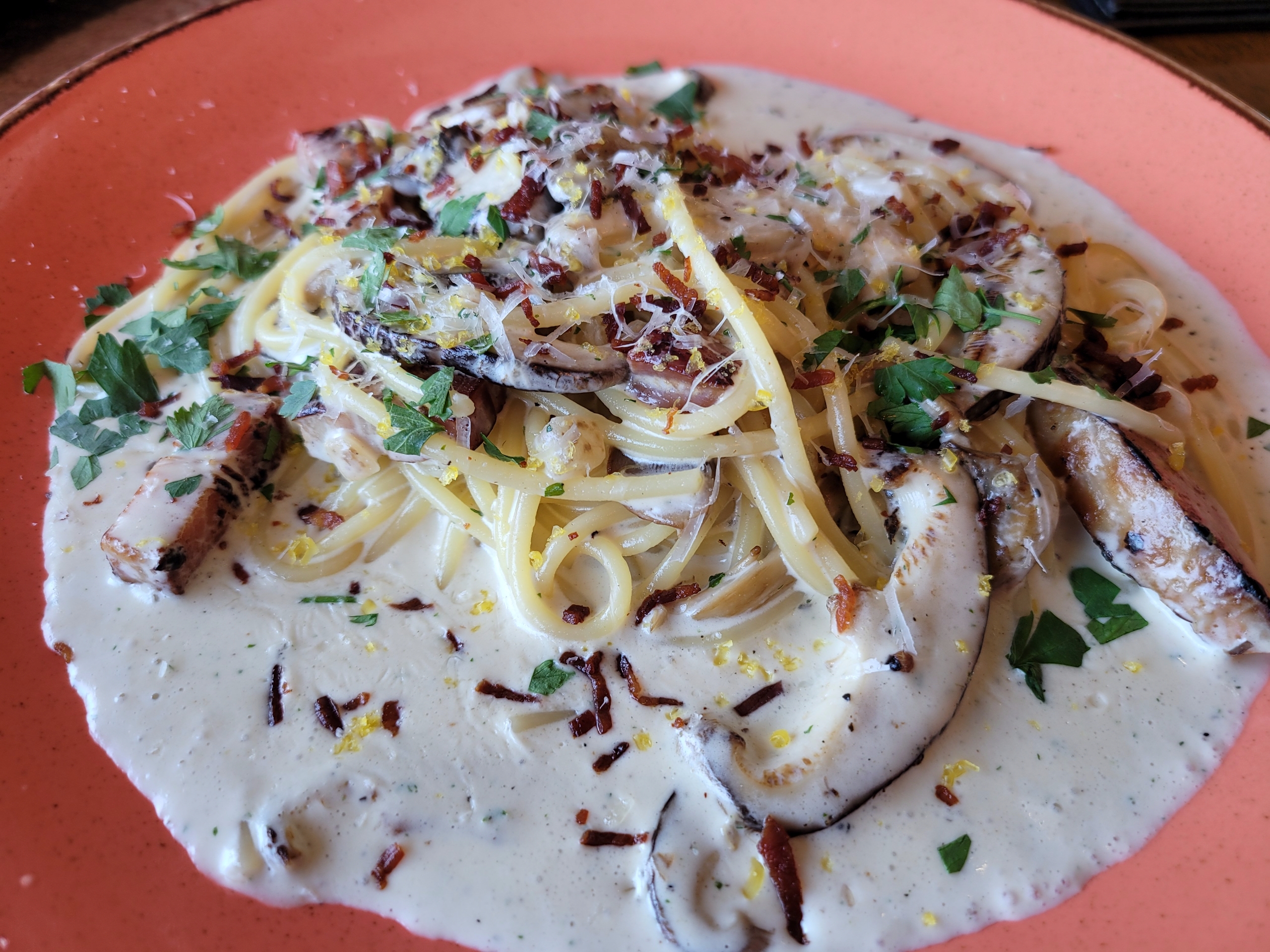 Ordered Cream pasta with mushrooms & Canadian bacon🥓