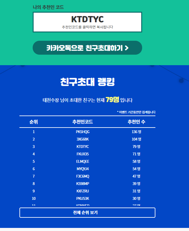 3명 초대할때마다 기프티콘 줍니다. 최대 30명까지 가능한데 저는 그래서 아메리카노 기프티 10장받앗어요 ^_^