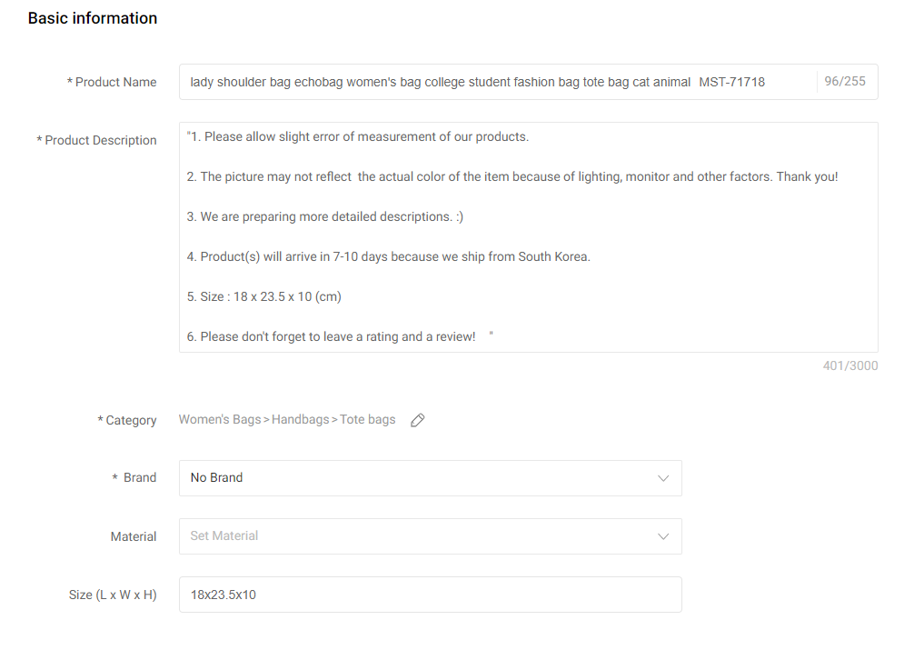 가격은 보통 원가 + 마진 + 배송료(한국에서 해외배송료) + 수수료를 계산해서 입력하면 됩니다.