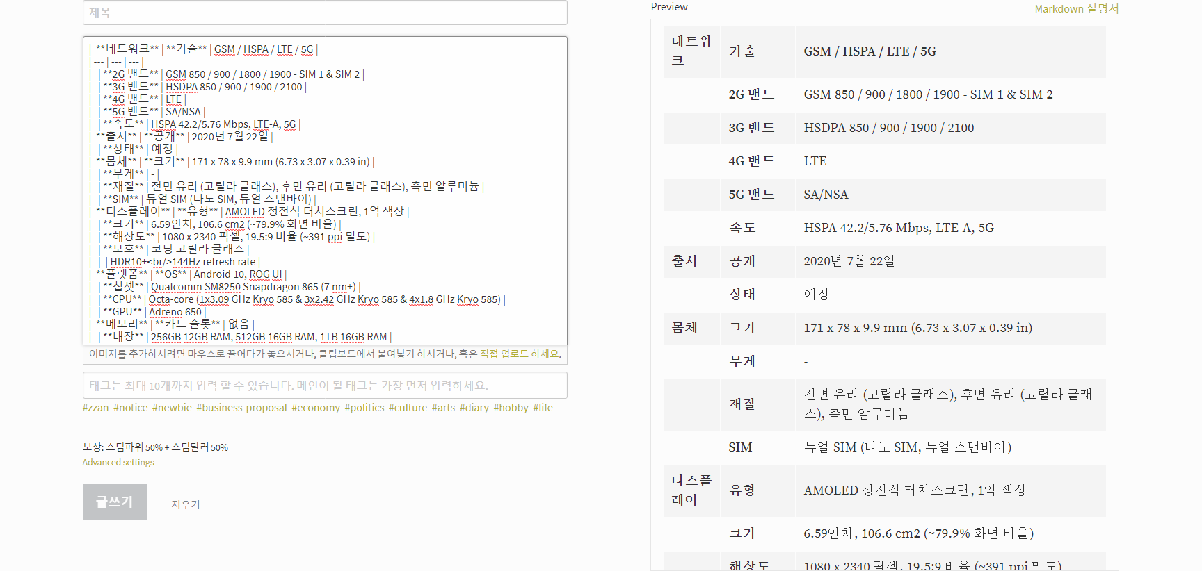 안녕하세요. @justsfeel입니다. 이번에 포스팅을 하나 하면서 표를 작성할 필요가 있었습니다.