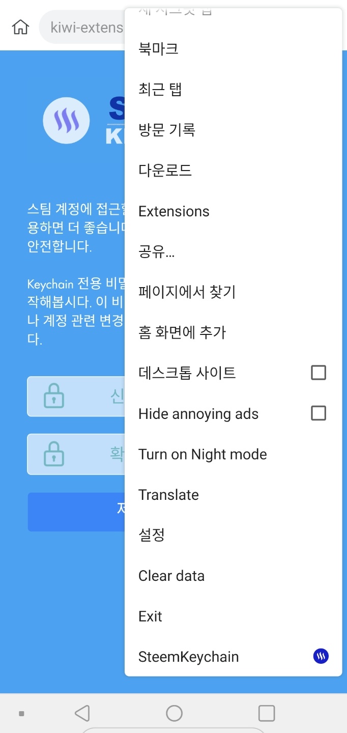 키체인은 크롬 익스텐션 입니다. 그럼 모바일에서 크롬익스텐션을 지원하는 브라우저를 사용하면 키체인을 쓸 수 있겠네요.
