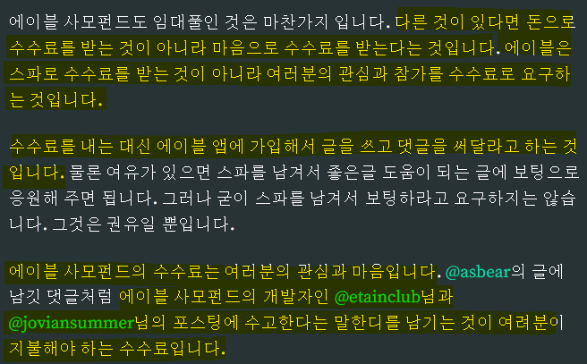수수료 안 받고, 개발자님들에게 수고 한다고 말 한마디,,