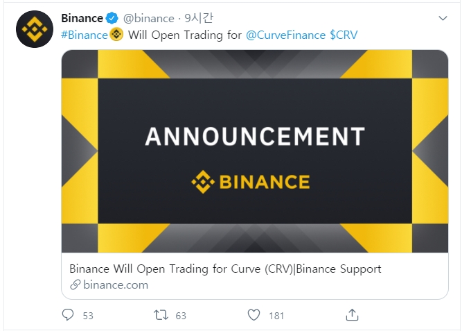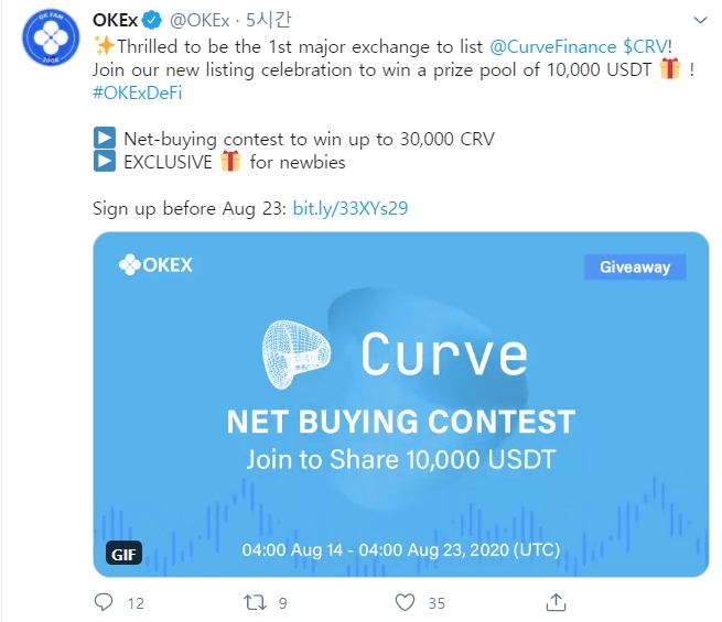 디파이에서 중요한 역할을 하는 CRV토큰은 후오비, 바이낸스, 오케이엑스가 거의 동시에 상장을 발표했습니다.