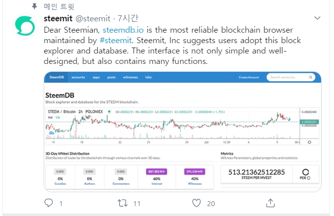 스팀잇의 메인트윗에서도 https://steemdb.io/ 사이트를 메잇으로 고정해 놓고 있습니다.