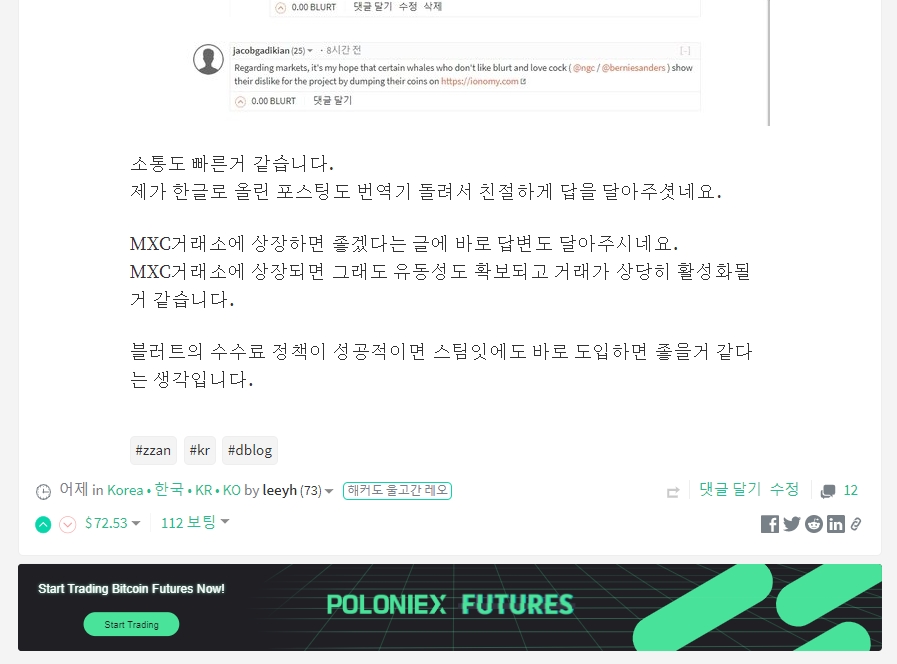 스팀잇 포스팅 하단에 폴로닉스 광고가 올라오기 시작했습니다.