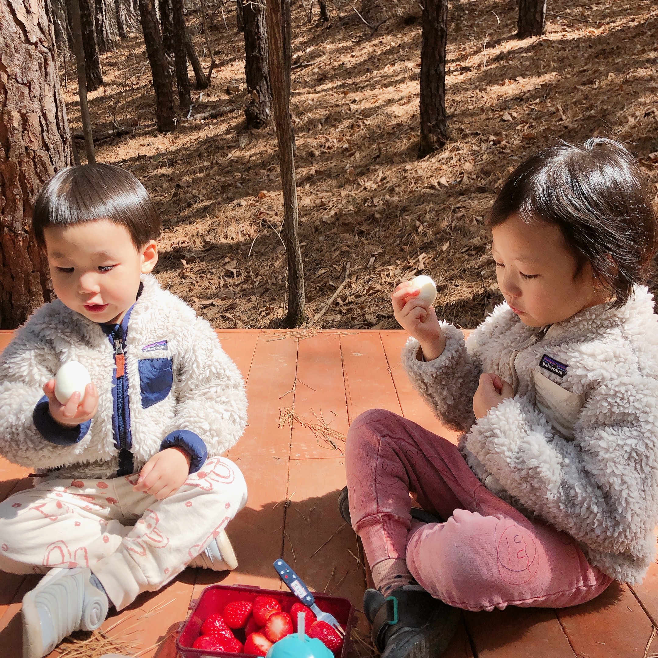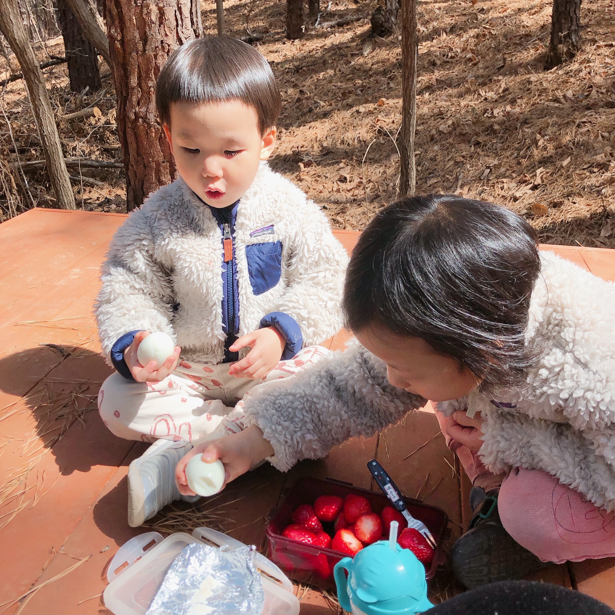 아이들 데리고 과일과 삶은 계란을 챙겨 등산도 다녀왔어요. 쪼꼬미들이 어찌나 잘 먹는지 딸기 한 팩 순삭이고 삶은 계란 다섯 개를 저는 손도 못대봤네요😂제가 에너지가 넘치니 아이들을 조금 더 잘 수용해주고 잘 혼내지도 않게 돼서 그것도 큰 장점이에요.