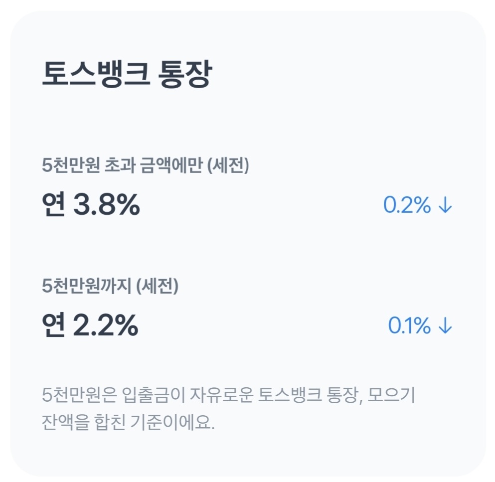 (어찌됐든, 이 소식 때문에 토스뱅크에 몰아두고 연 4% 데일리 이자 받던 원화들을 연 3.7% 제공하는 타 은행 예금 3군데로 분산시켰다.)