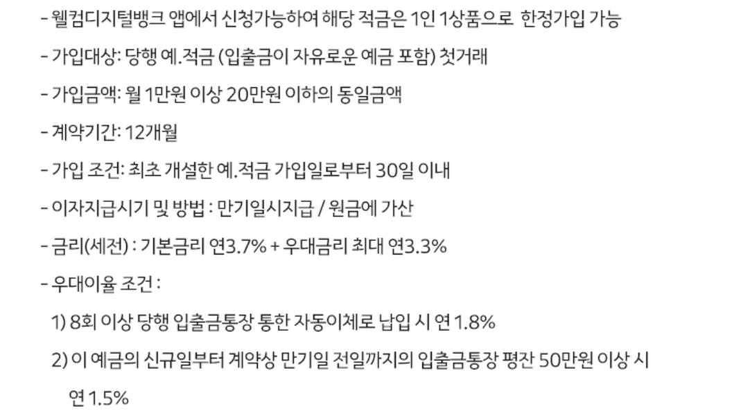 카카오페이 통해서 웰컴저축은행 첫거래우대 정기적금 가입 시,