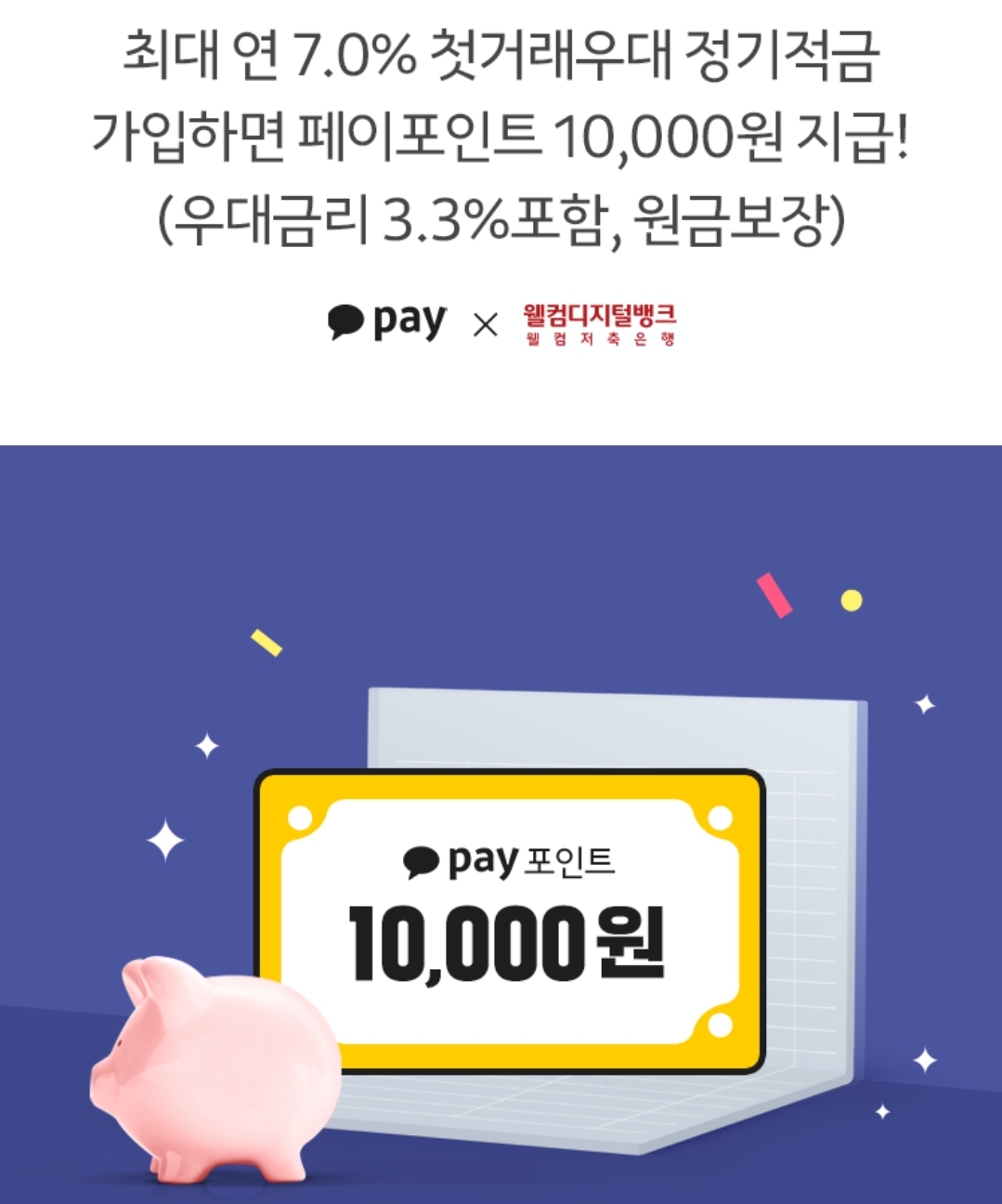 카카오페이 통한 웰빙적금, 첫 가입시 연이율 7%, 카카오페이 10,000원 환급