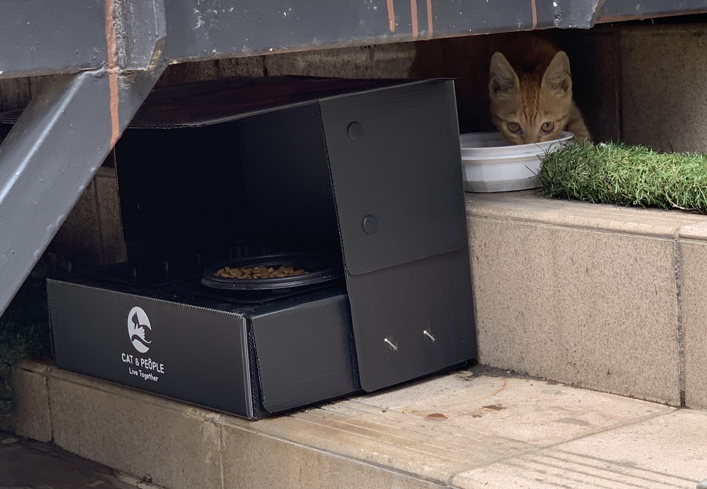 곱창집 야외 좌석밑에 급식소가 생겼다~nowmacha (69)도마위의 생선in Korea • 한국 • KR • KO • 6 years ago 원래 곱창집 야외 좌석 밑 공간에 냥이들 밥그릇과 물그릇은 항상 있었는데 이제 반듯한 새 급식소가 생겼어요~ 바닥밑에 밥그릇이 있어서 비가오면 안전할거 같지만 작은 틈들이 있기때문에 비가오면 스며들거든요.. 그런데 누군가 저렇게 비가와도 걱정없을 급식소를 넣어놨더라구요 ㅎㅎ 이 와중에 밥먹으러온 아기냥 아트가 너무 귀엽네요 #cat #kr #kr-life