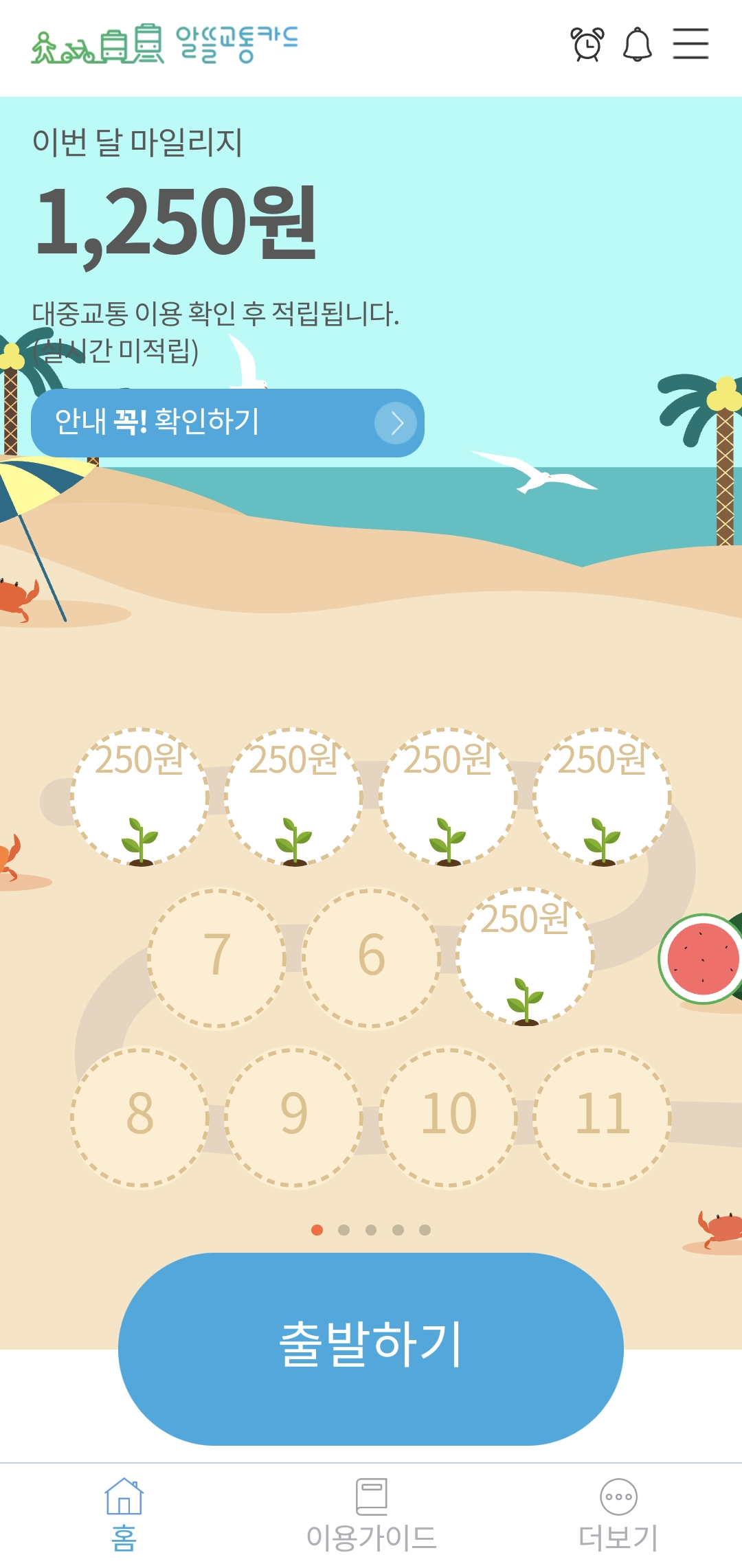 그것은 바로 정부에서 시행하는 "알뜰교통카드"라고 하는 대중교통비용 할인 플랫폼인데요. 이것은 내가 사는 주소지와 목적지 그리고 신분증을 플랫폼에 입력하고 대중교통을 이용하면 1회 이용시마다 아래사진과 같이 250원을 리워드 해주는 서비스입니다.