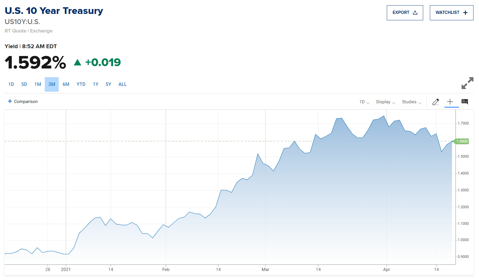 미국 국채 10년물 금리 3개월 추이, Source: CNBC