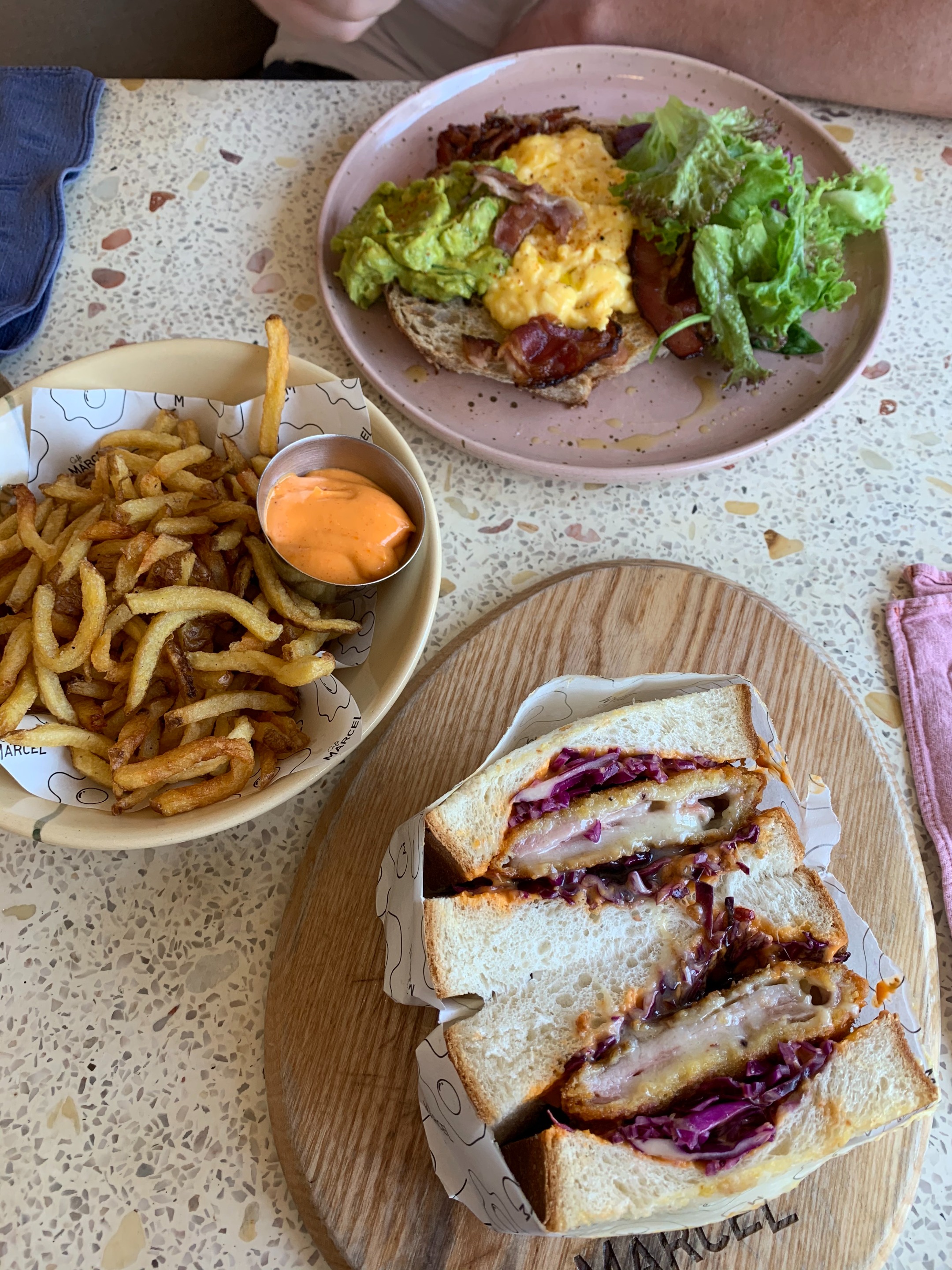 저는 이런 브런치 레스토랑에 가면 꼭 퓨전음식을 시키는것 같아요ㅎㅎ 양식은 너무 느끼해서 그나마 이런 퓨전 음식이 입에 좀 맞더라구요...ㅎㅎ 일본식 돈카츠가 들어간 샌드위치였는데 무난무난하고 맛있어요 :) 사이드로 프렌치 프라이도 나오는데 절대 혼자서 다 먹을 수 있는 양은 아니에요ㅎㅎ